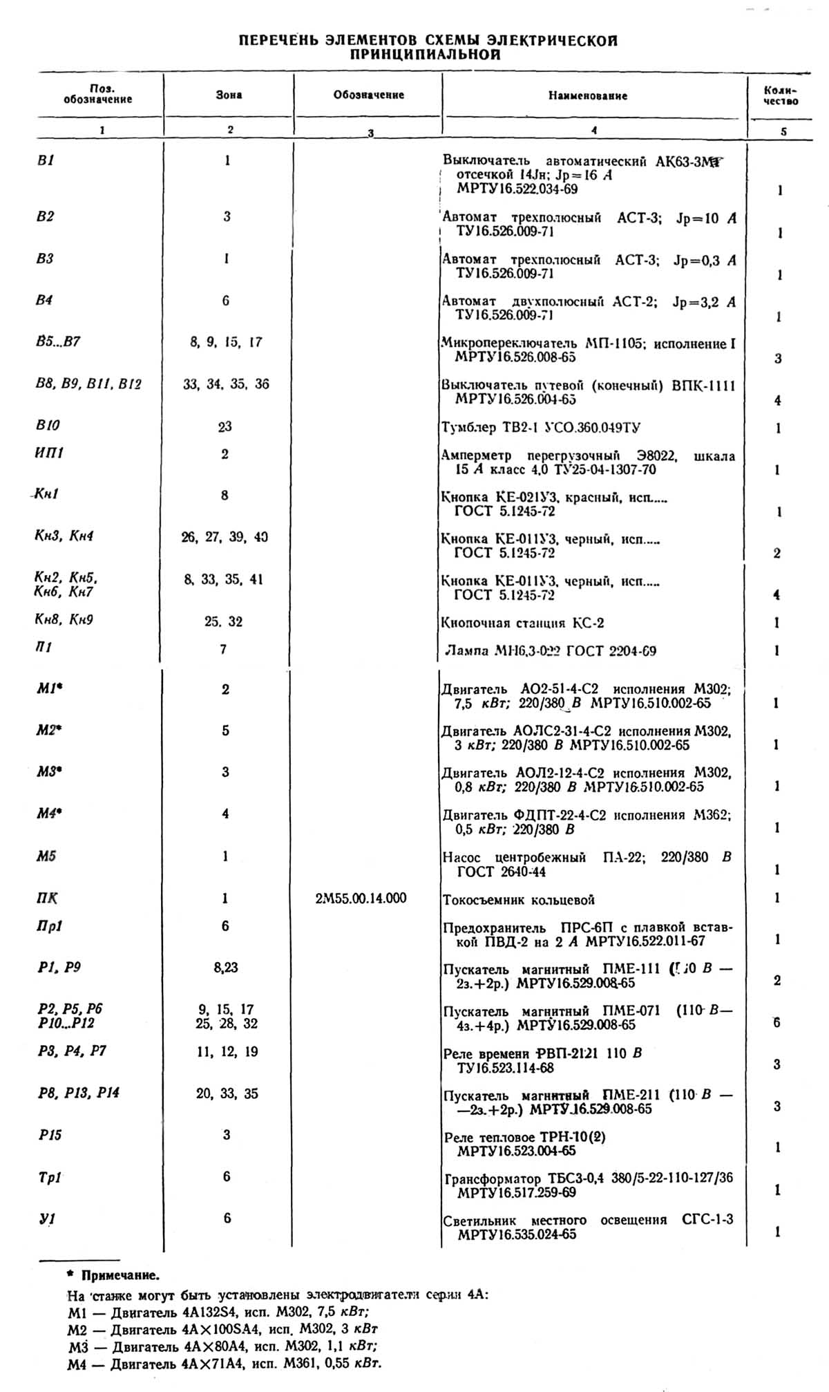 Верстат оборудован пятью електродвигунами (см. табл. 6).
