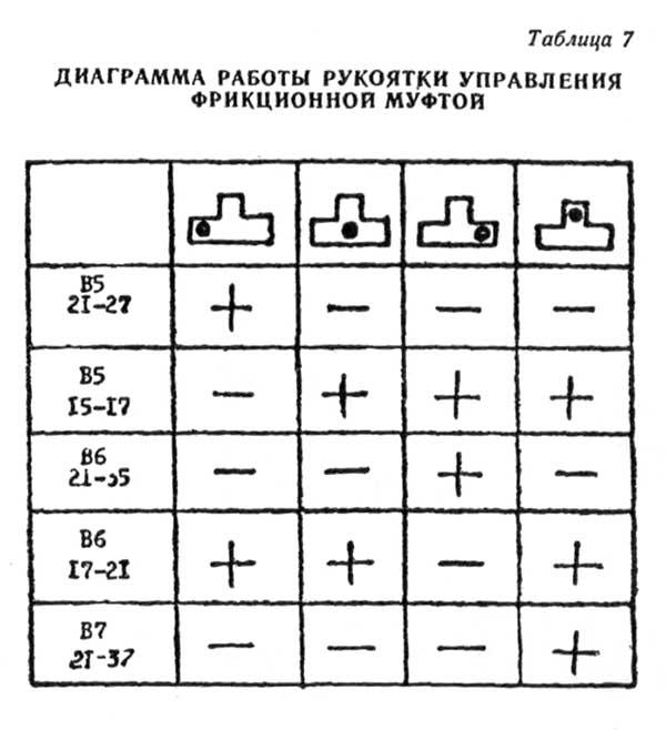 Диаграмма роботи рукоятки керування фрикционной муфтой