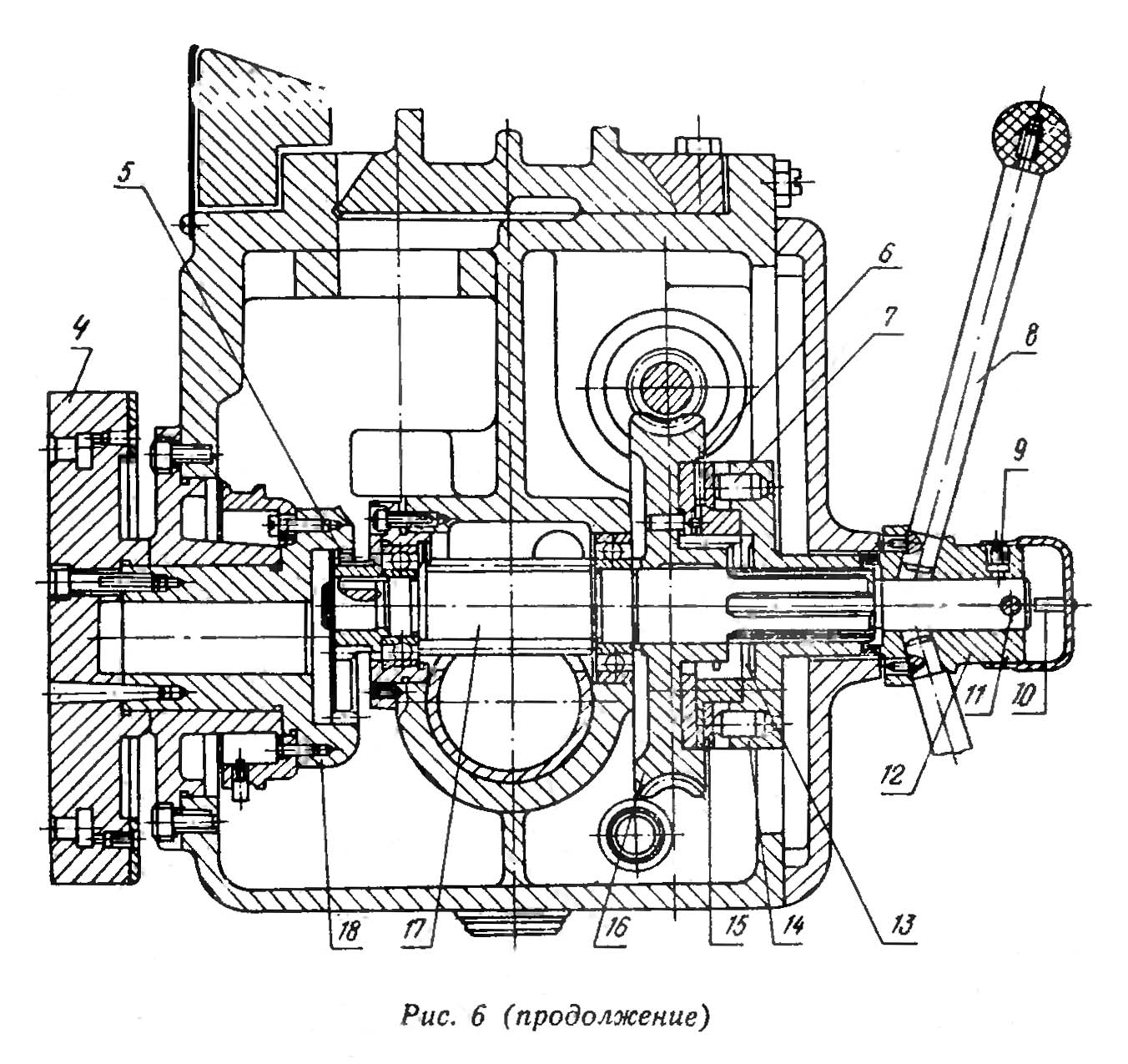 Вал 9 через штифт 8 приводит во вращение шестеренный насос для змазки.