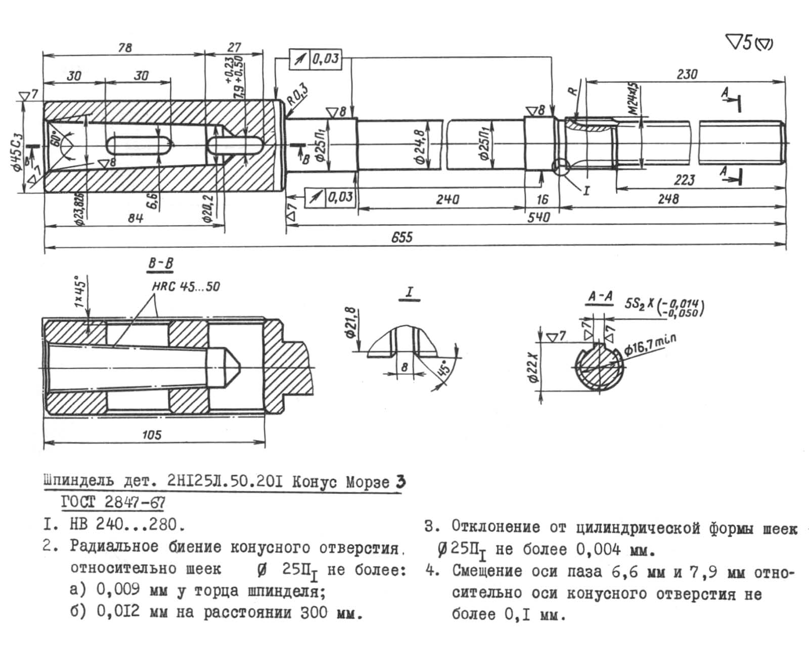 Шпиндель вертикально-сверлильного верстата 2Н125Л. Скачать в увеличенном масштабе