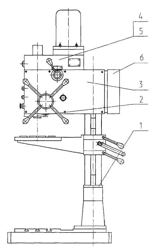 Свердлильна головка є чавунним виливком коробчатої форми, в якій змонтовано шпиндель верстата, механізм переміщення шпинделя, противагу шпинделя.