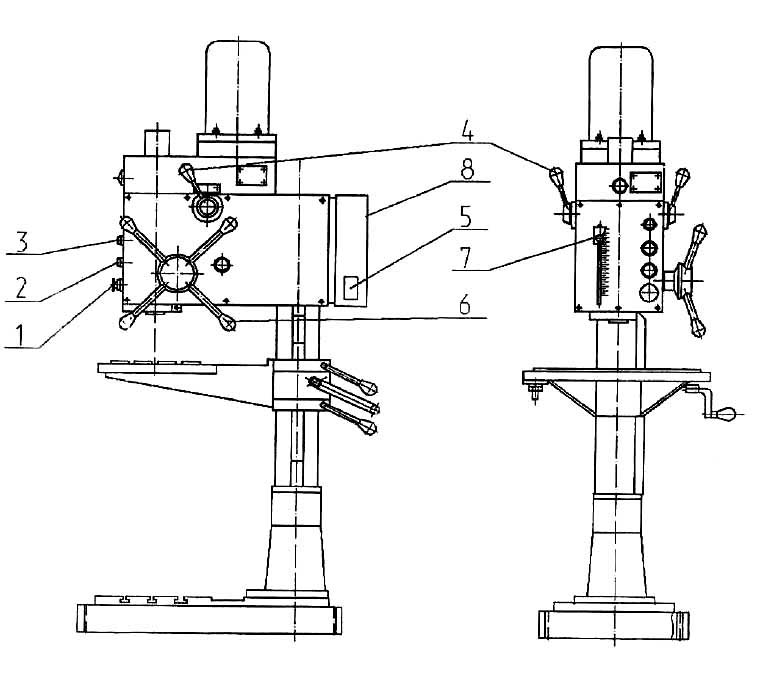 Перемещение шпинделя контролируется по указателю 5, налаштування на определенную глубину сверления осуществляется переміщенням указателя 5 по скалке 4 з помощью гвинта.