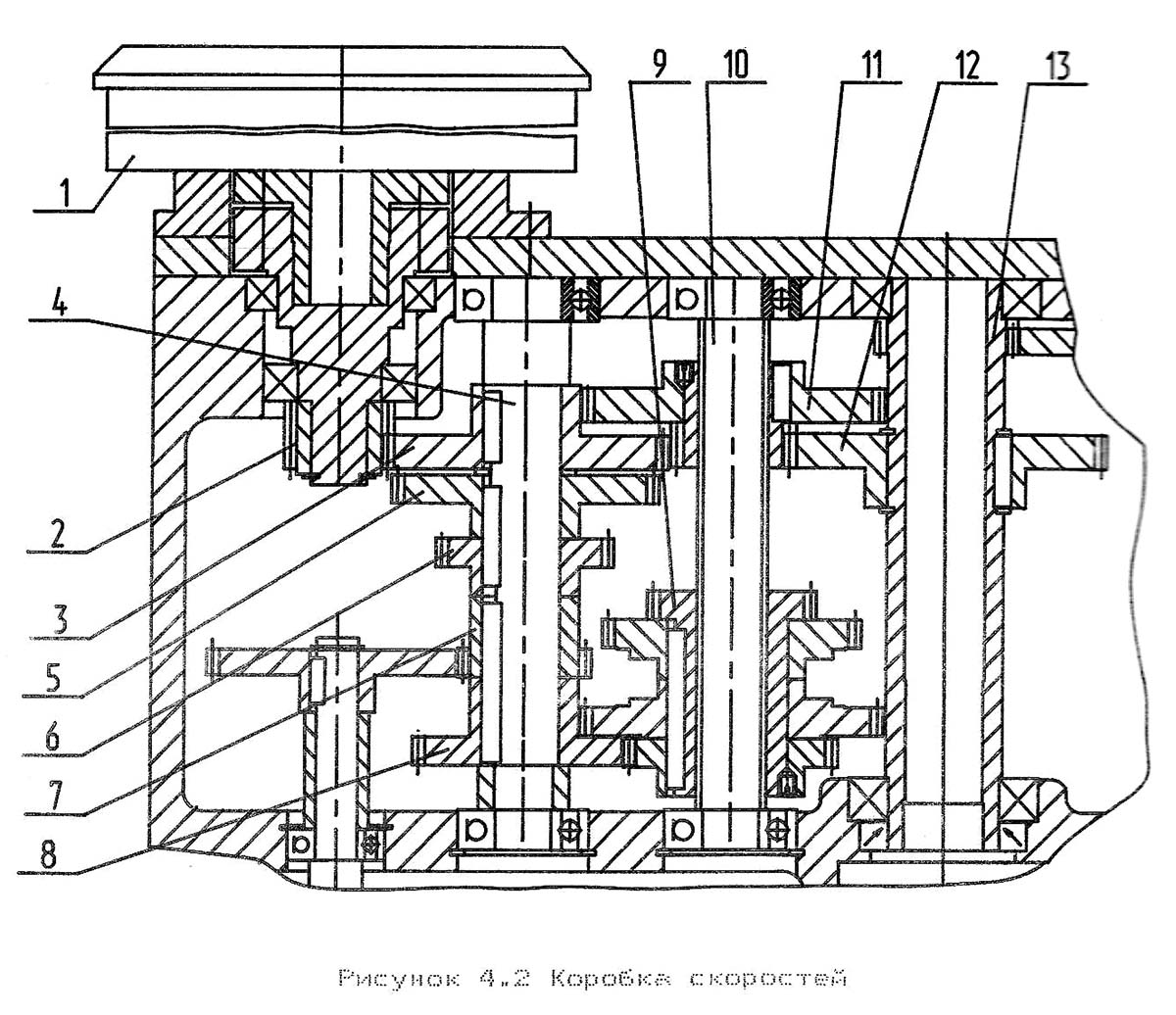 Коробка швидкостей вертикально-свердлувального верстата 2Т140. Дивитись у збільшеному масштабі