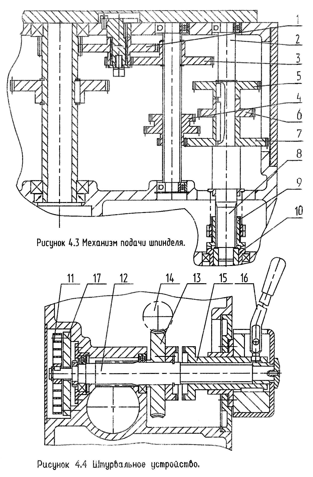 Механізм подачі шпинделя вертикально-свердлувального верстата 2Т140. Дивитись у збільшеному масштабі