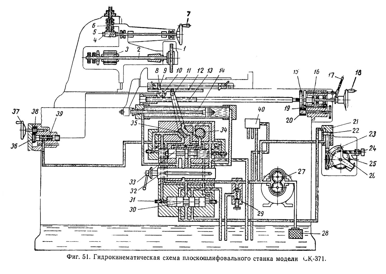 Гідроконструктивна схема верстата 371м-1 (Рис.40)