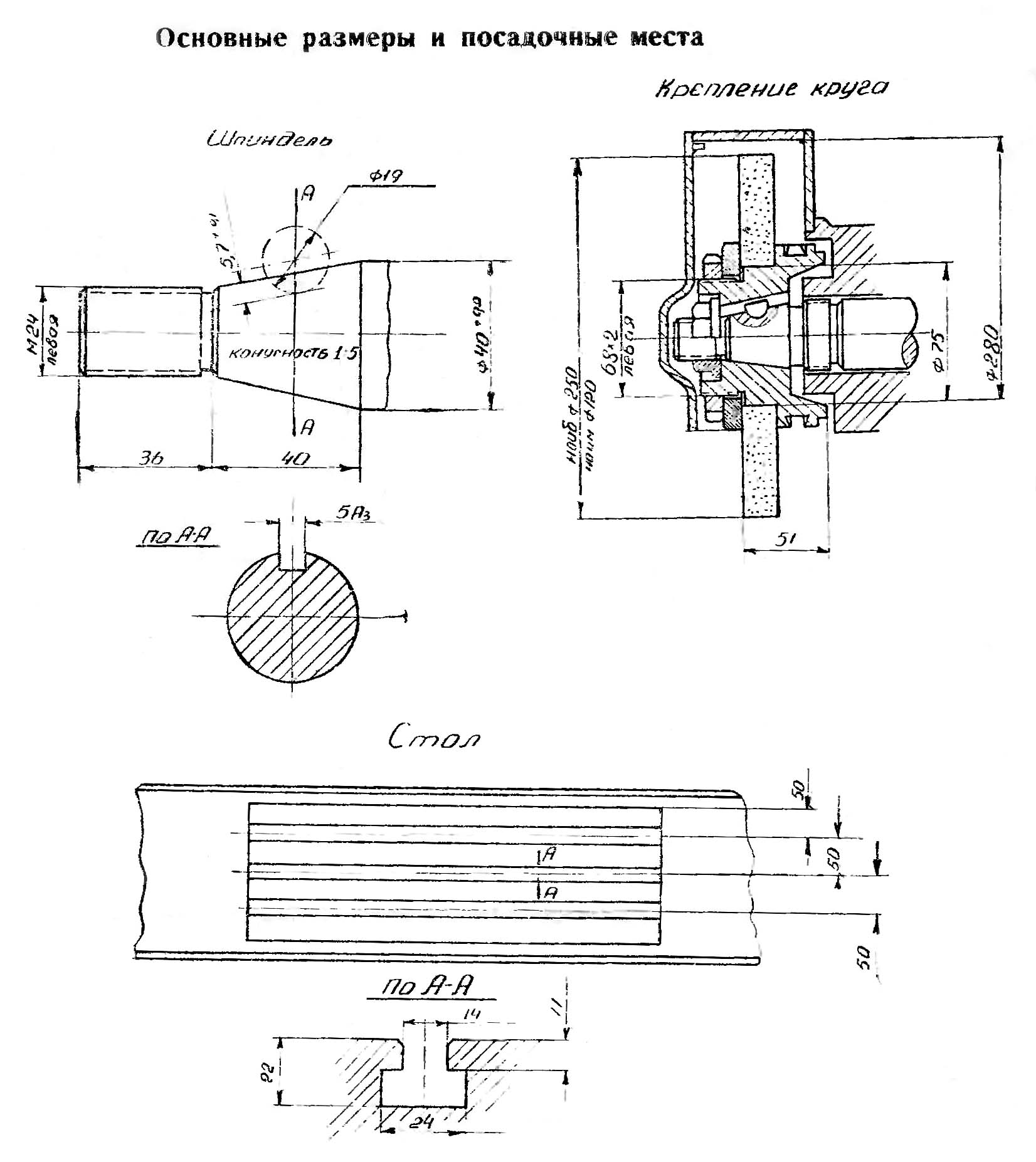 Посадочні та приєднувальні бази плоскошліфувального верстата 371М-1. Дивитись у збільшеному масштабі