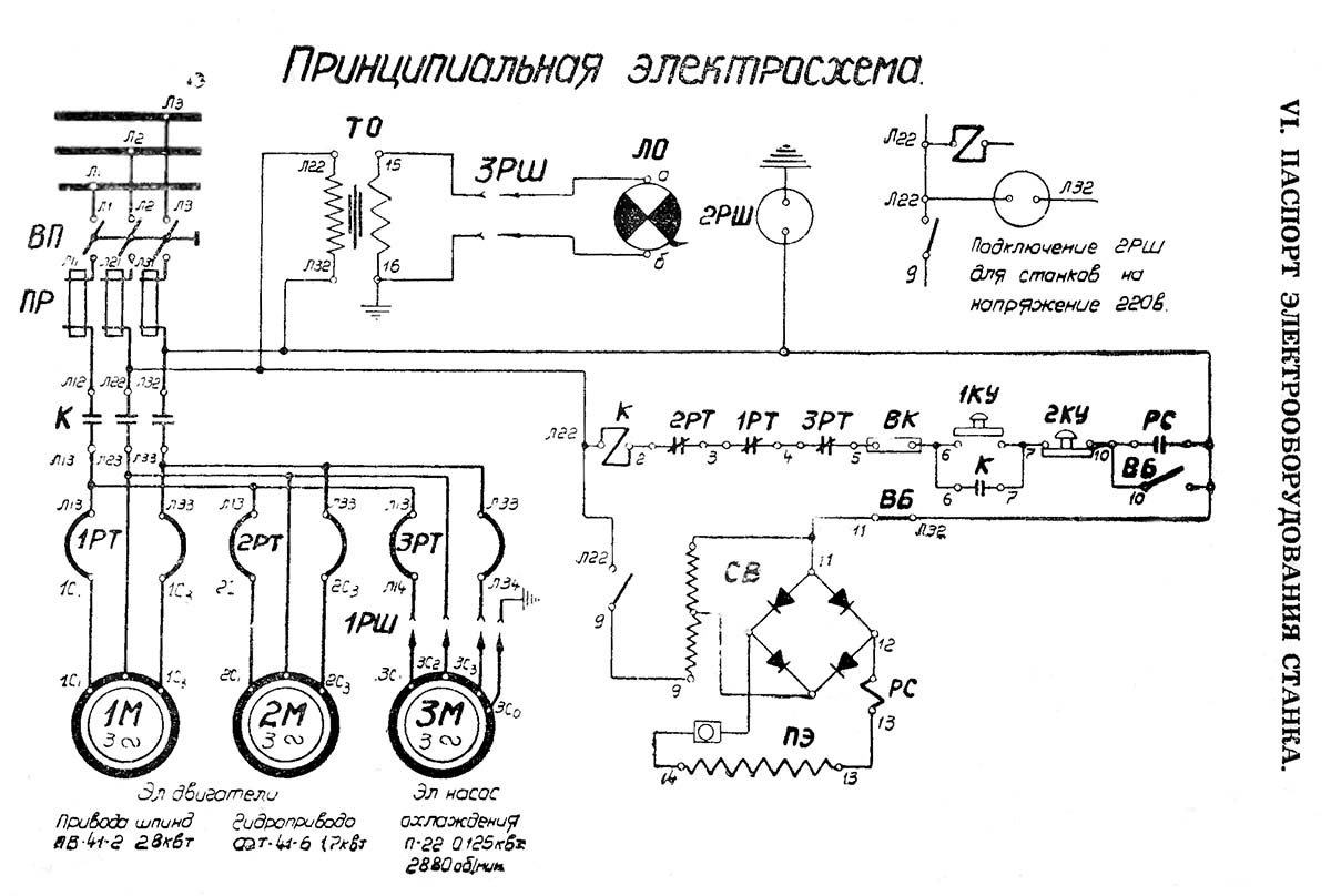Схема електрична плоскошліфувального верстата 371м-1. Дивитись у збільшеному масштабі