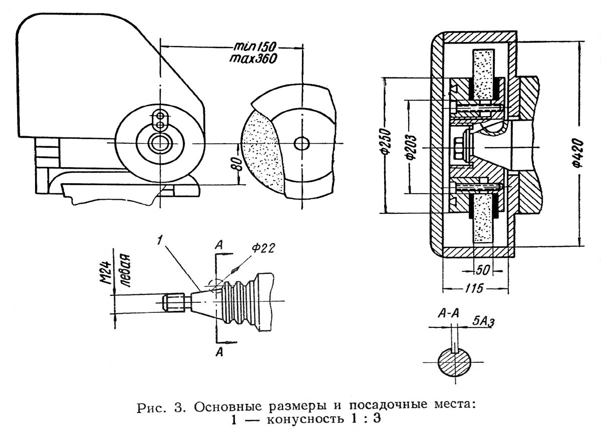 Диаметр кінця шлифовального шпинделя по ГОСТ 2323-67 (конусность 1:5), мм | Ø 50 | Ø 50 | Ø 80 | |