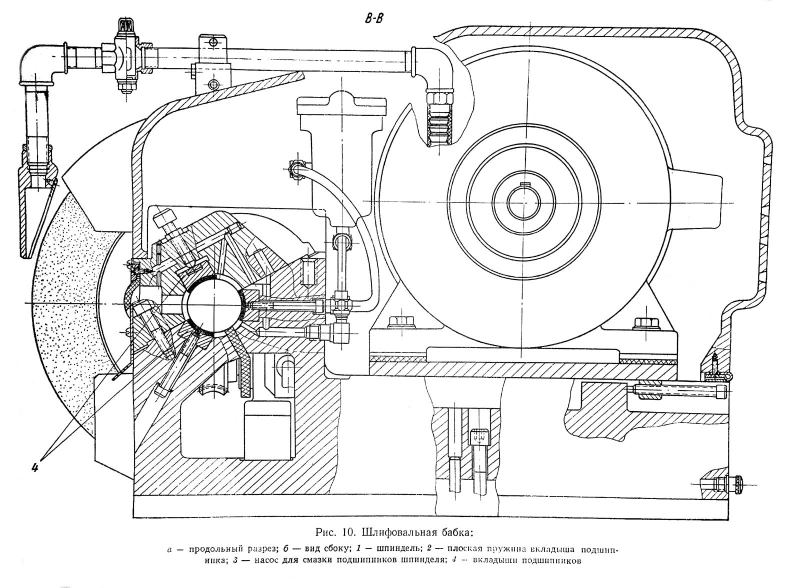 Шлифовальная бабка (см. рис. 10) состоит из массивного чугунного корпуса, крышки корпуса і алюминиевого кожуха.