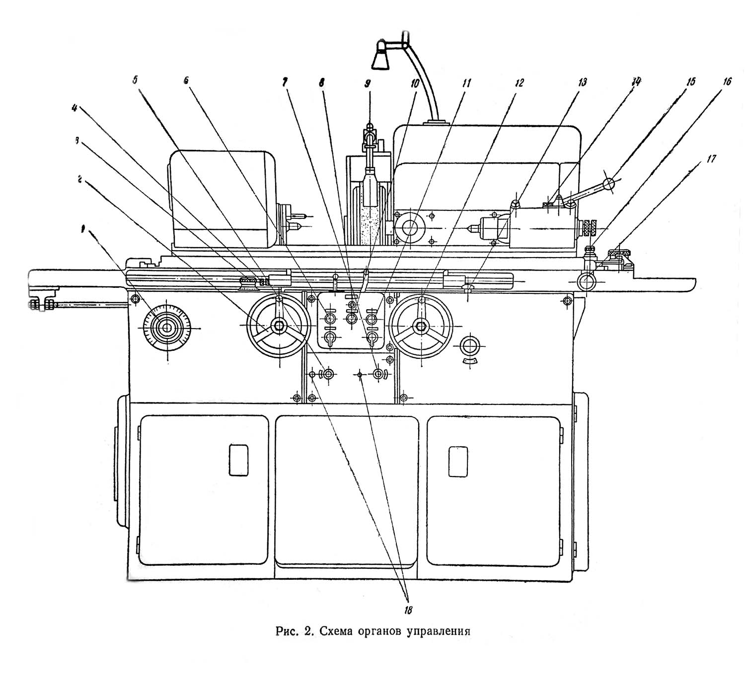 Розташування органів керування круглошліфувальним верстатом 3А153У