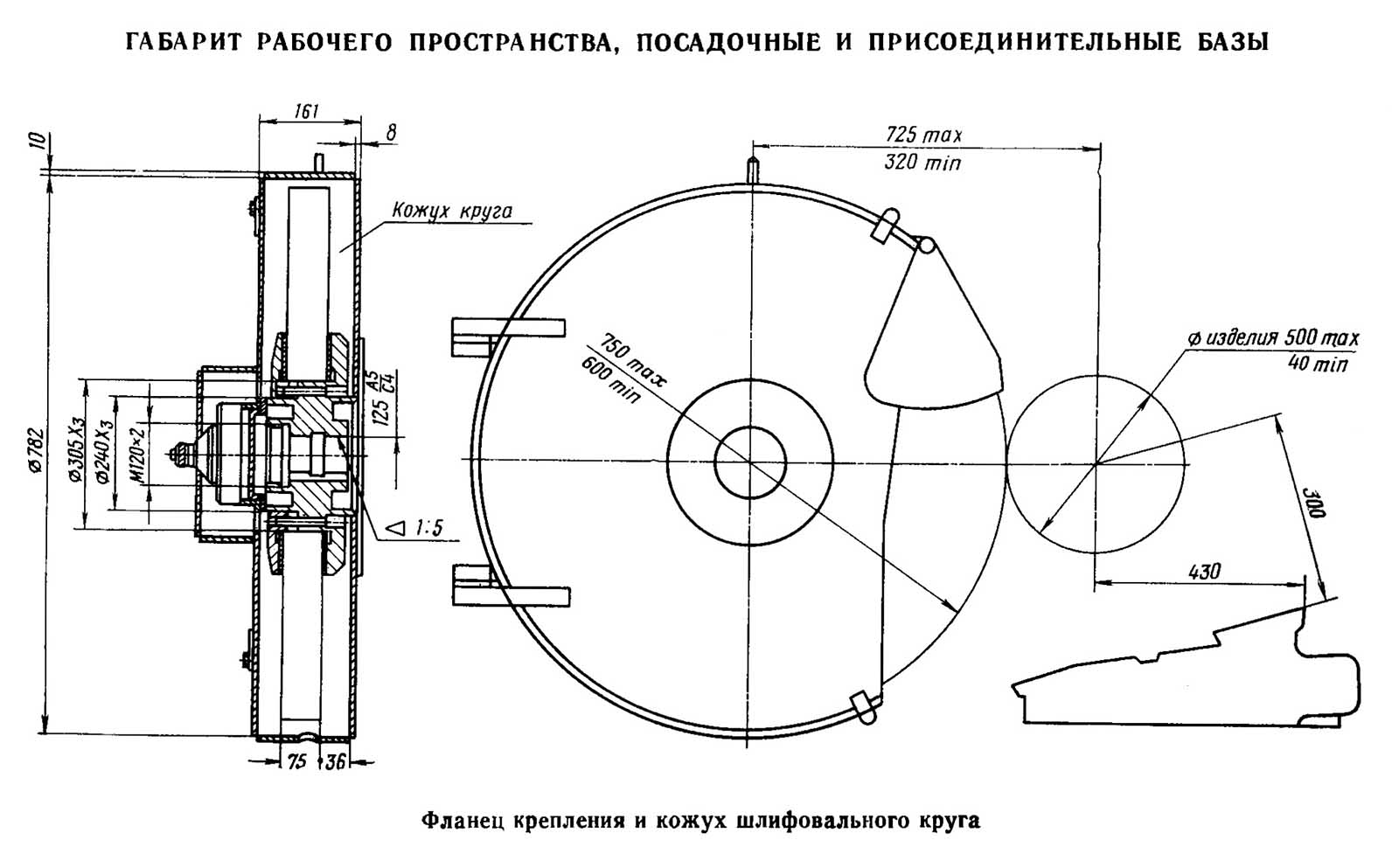 Габаритні розміри робочого простору круглошліфувального верстата 3а172