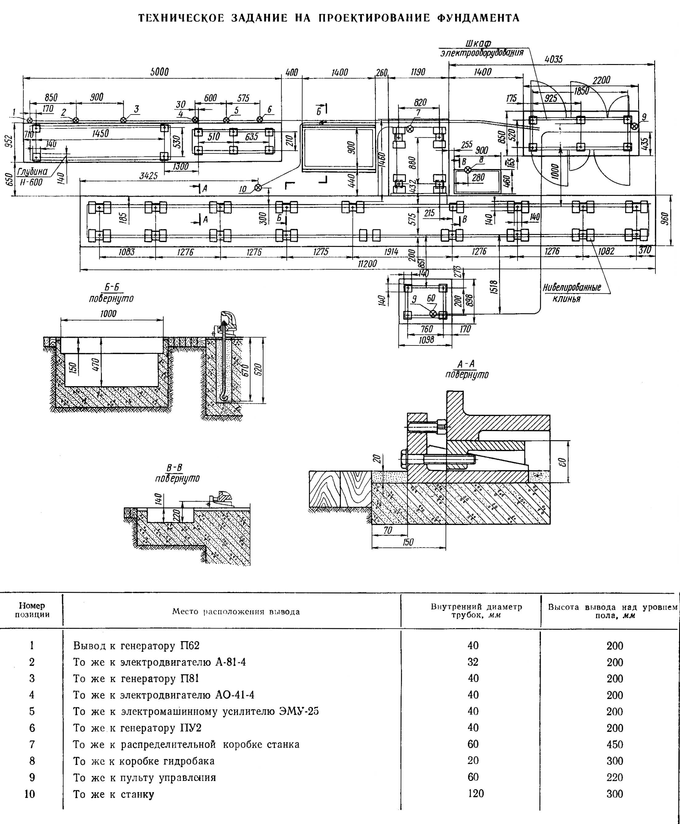 План фундаменту круглошліфувального верстата 3а172. Дивитись у збільшеному масштабі