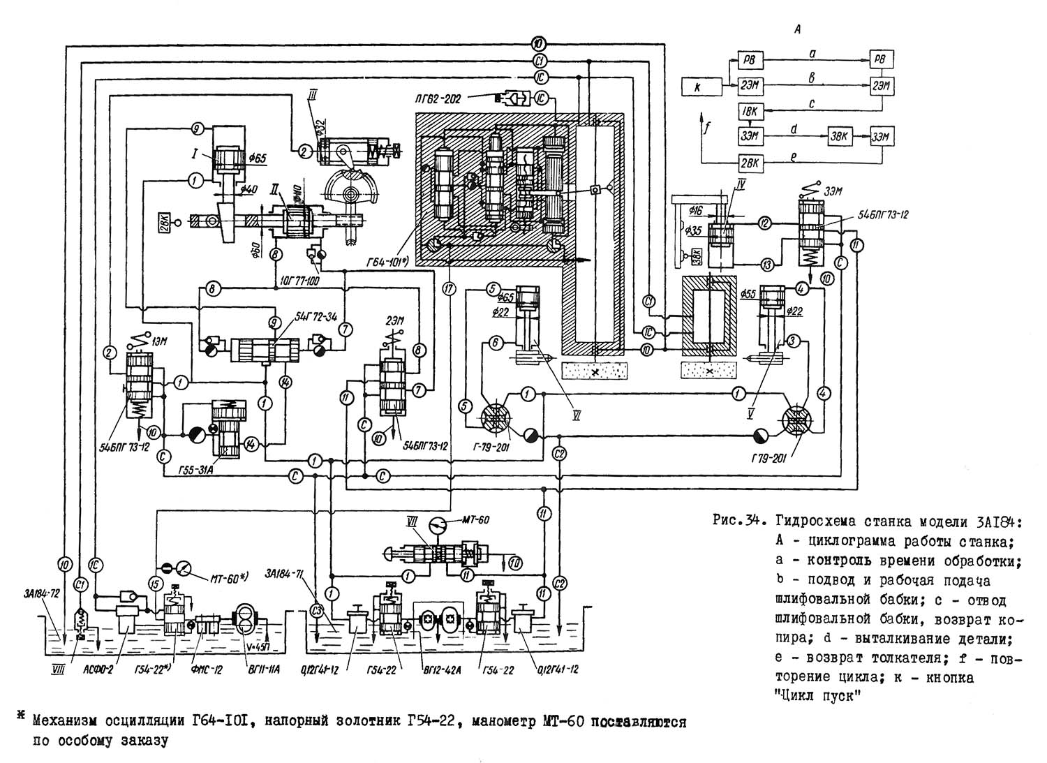 По особому заказу в ставов 3A184 встраивается узел "Гідропривід механізма осцилляции", состоящий из механізма осцилляции Г64-101, предназначенного для сообщения шпинделю шлифовального круга осциллирующего руху, напорного золотника Г54-22, поддерживающего рабочее давление, манометра МТ-60.