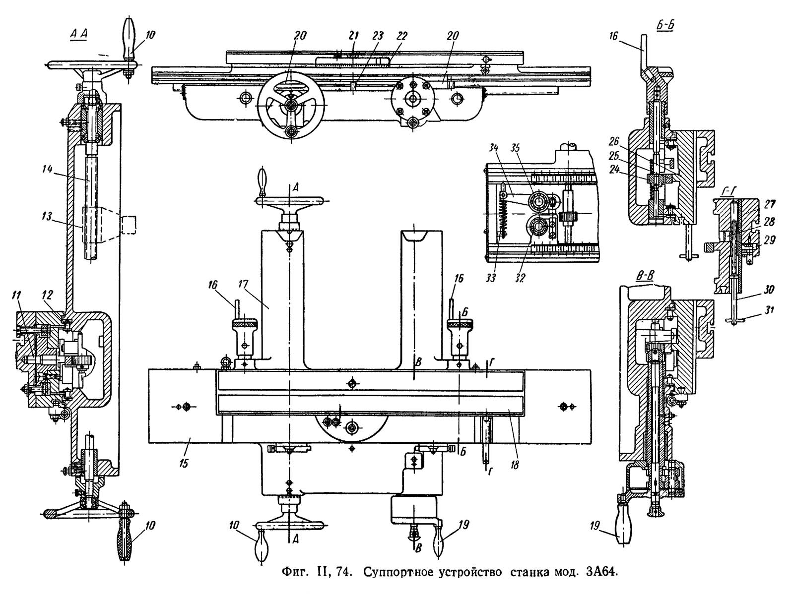 Суппортное пристрій верстата 3а64. Скачать в увеличенном масштабе
