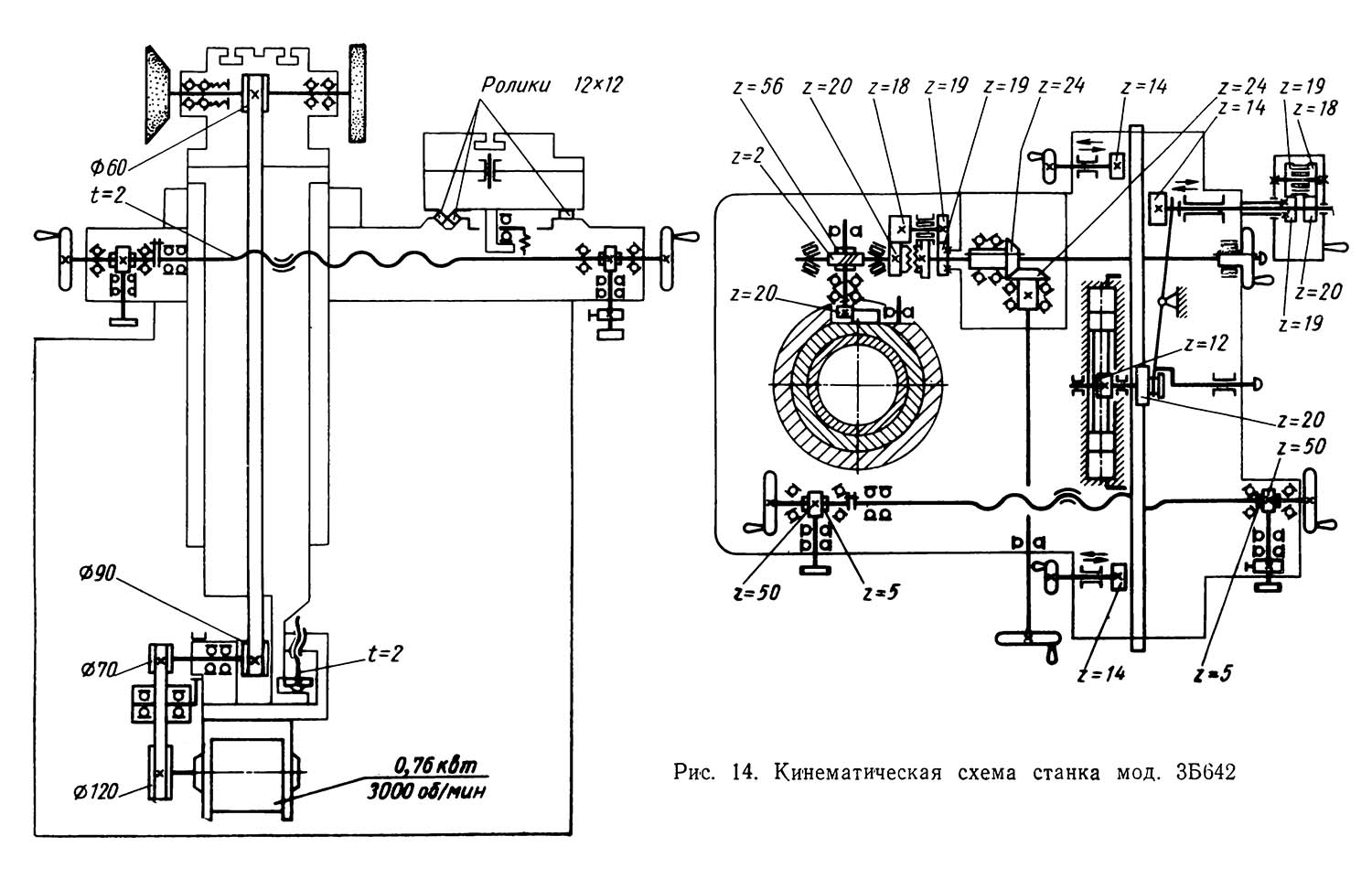 Нижче коротко розглянуті кінематична схема та основні вузли верстата мод. 3Б642. Відмінності конструкції вузлів верстатів моделей 3Б642, 3В642, 3Б641 і 3В641 незначні.