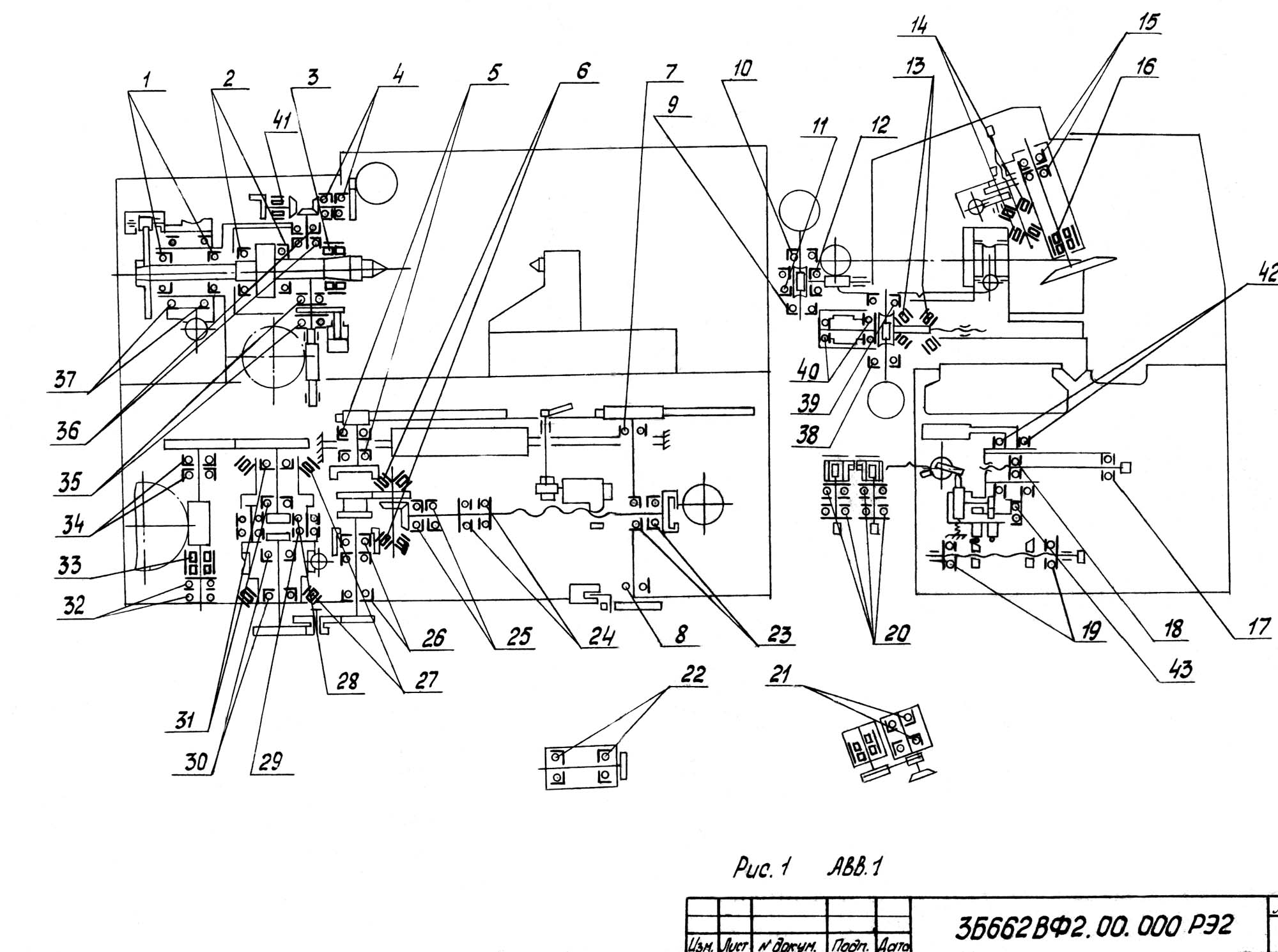 Настановне креслення заточувального верстата 3Б662ВФ2. Завантажити у збільшеному масштабі