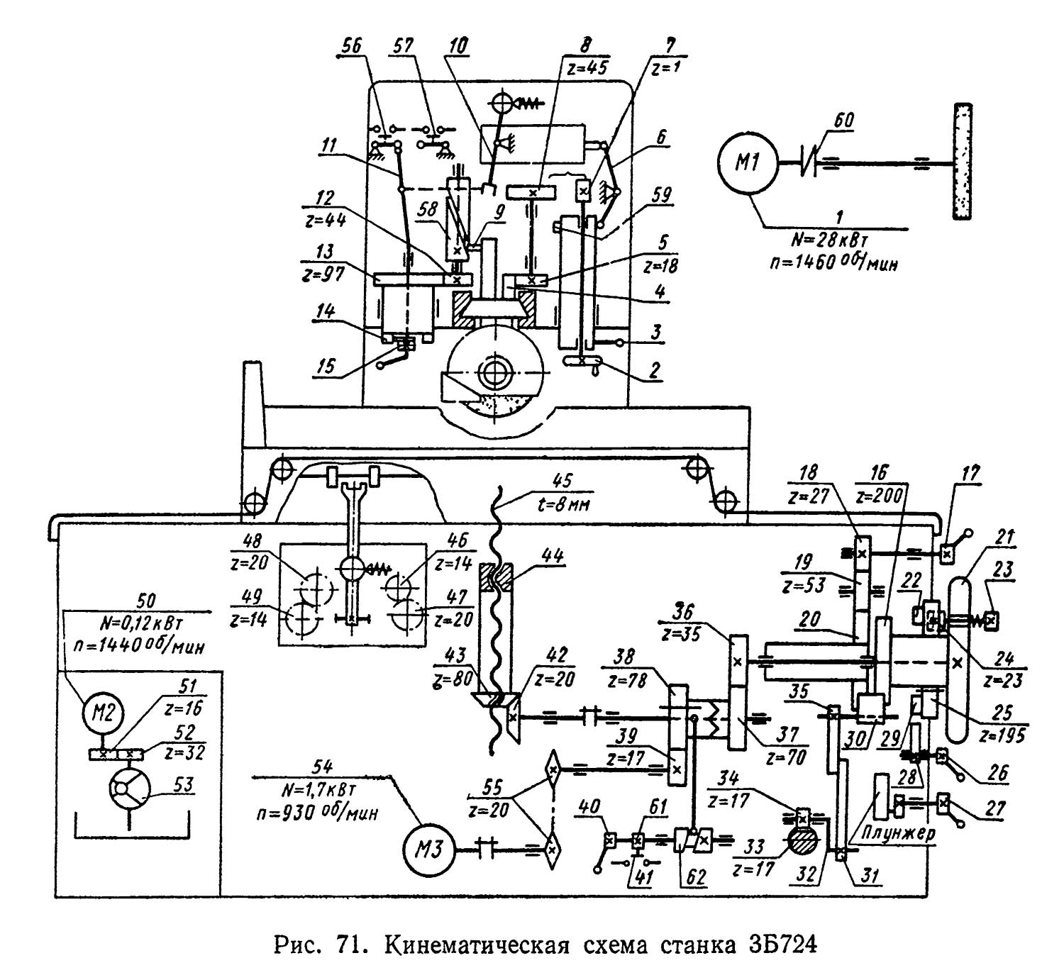 1. Схема кінематична внутрішньошліфувального верстата 3Б724. Дивитись у збільшеному масштабі