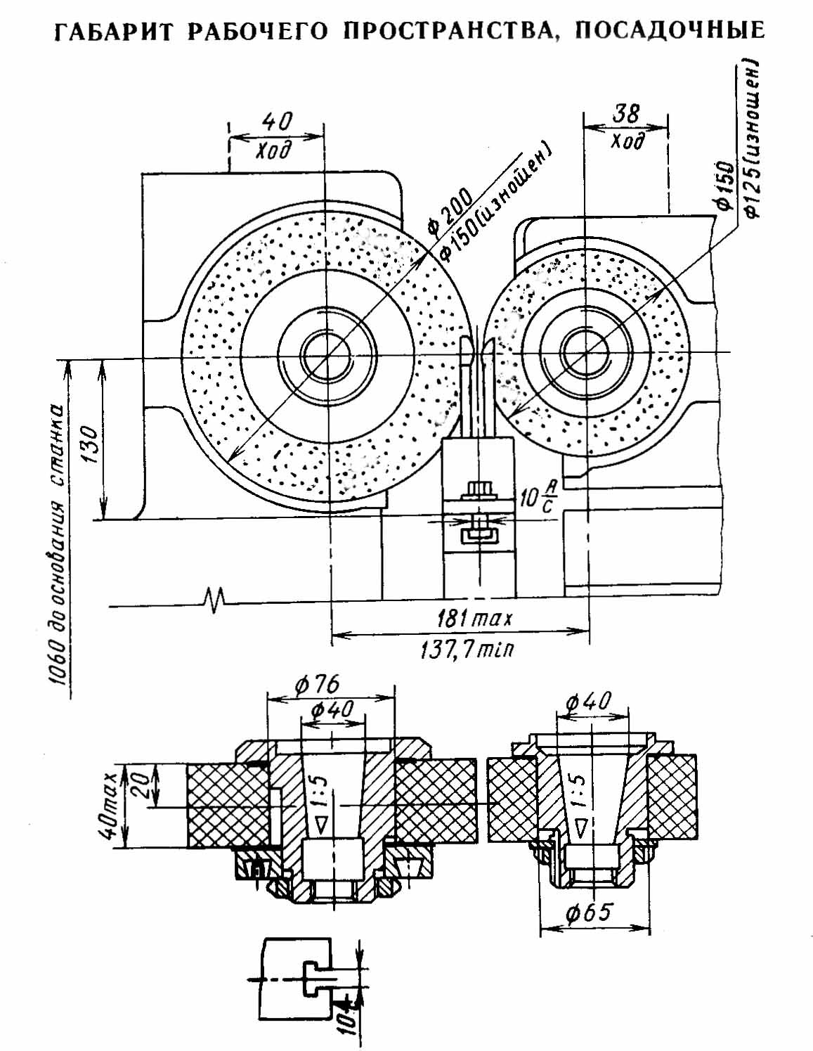 Габарит робочого простору шліфувального верстата 3Д180