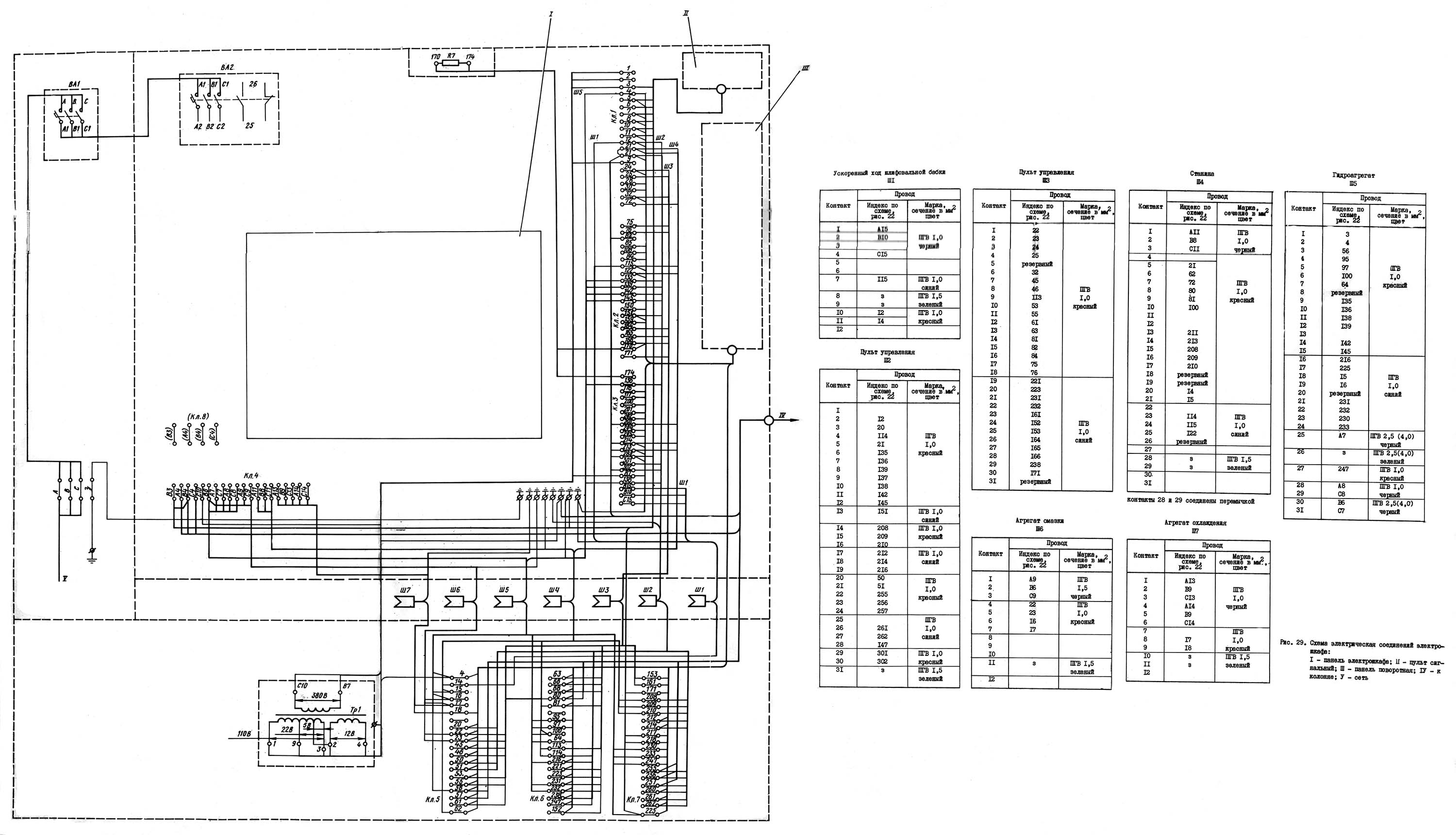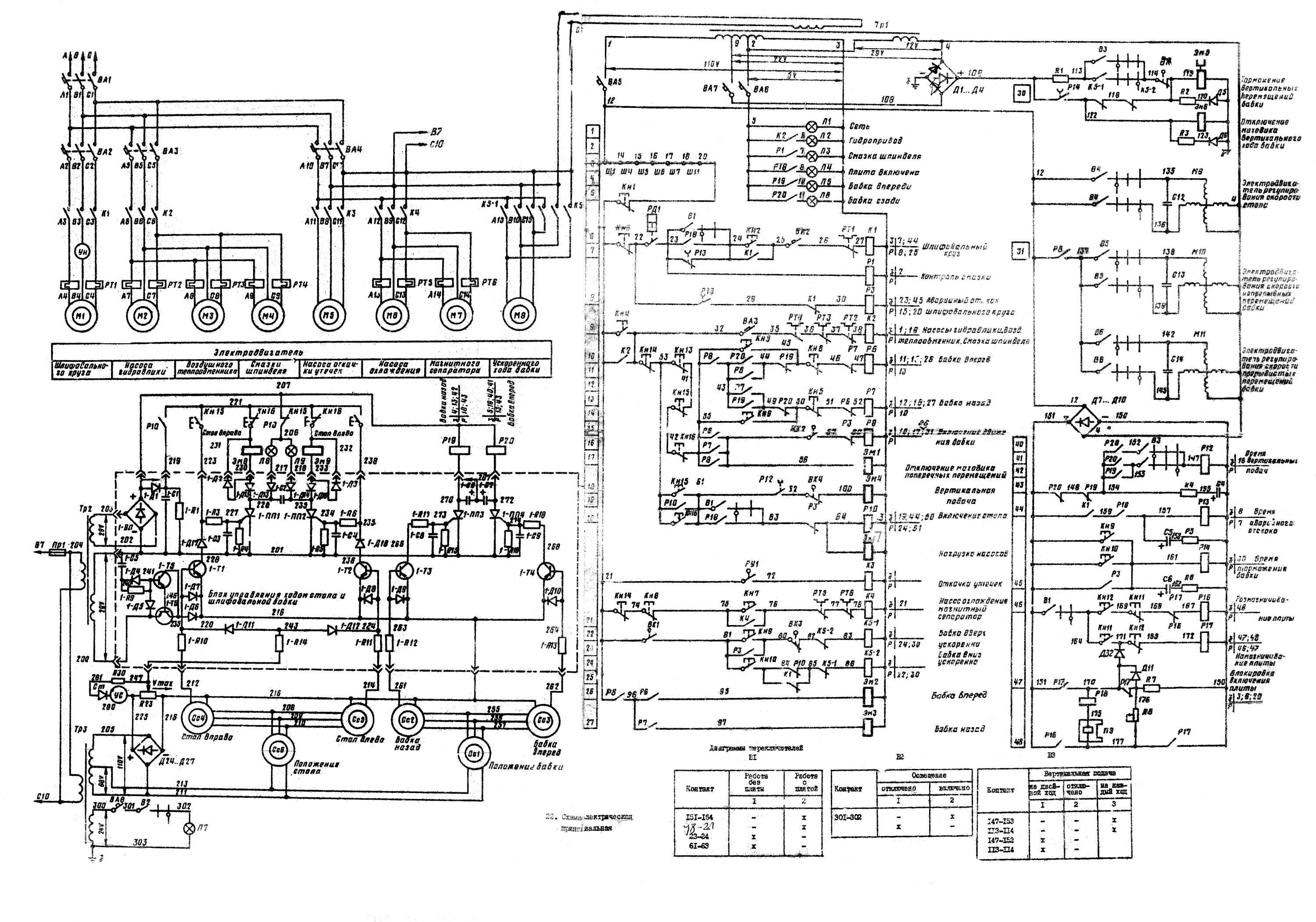 Схема електрична з'єднань плоскошліфувального верстата 3Д722. Дивитись у збільшеному масштабі