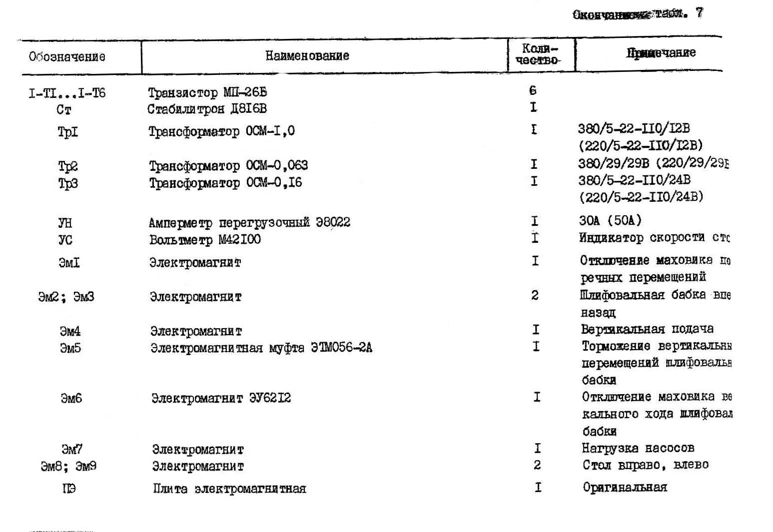 Список елементів плоскошлифовального верстата 3Д722. Дивитись у збільшеному масштабі