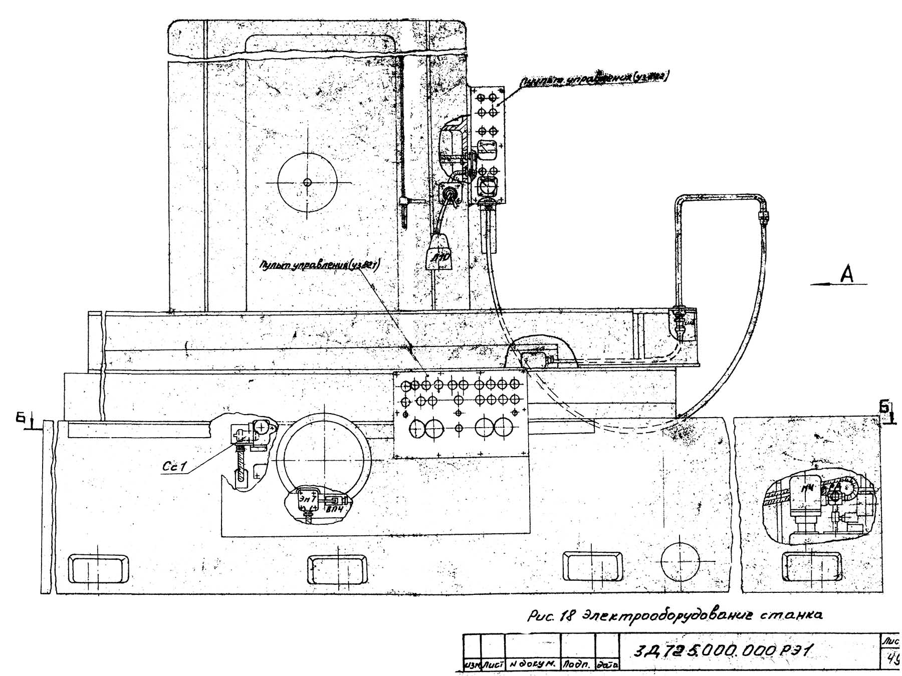 Схема розташування електроустаткування плоскошліфувального верстата 3Д725