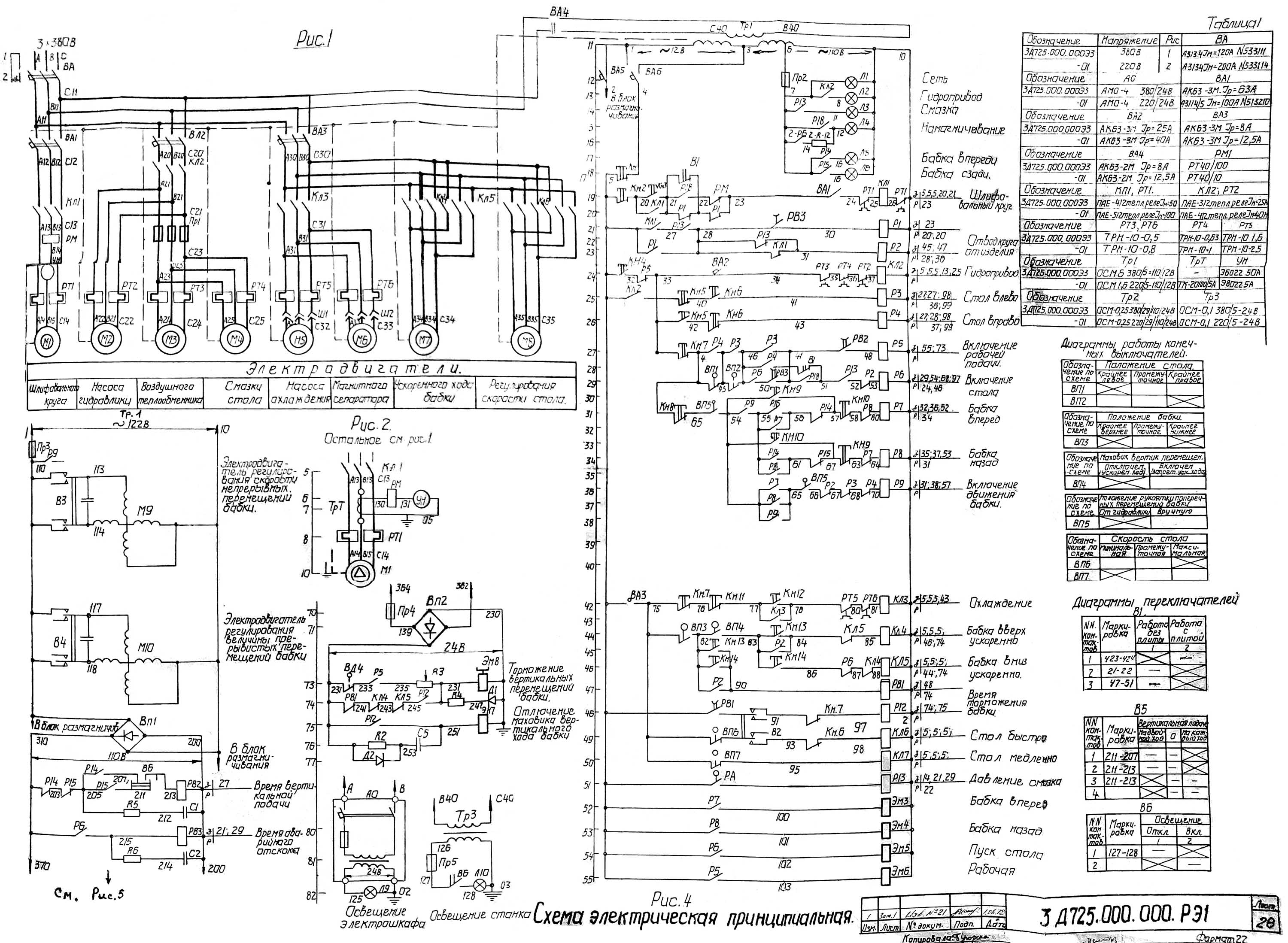 Електрична схема плоскошліфувального верстата 3Д725. Дивитись у збільшеному масштабі