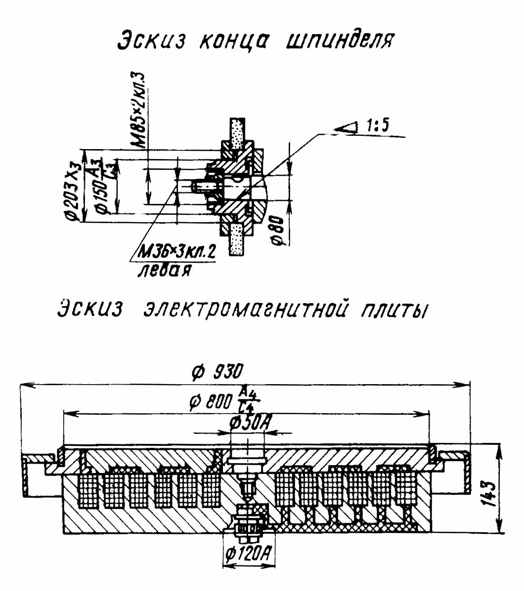Посадочні та приєднувальні бази шліфувального верстата 3Д741. Дивитись у збільшеному масштабі