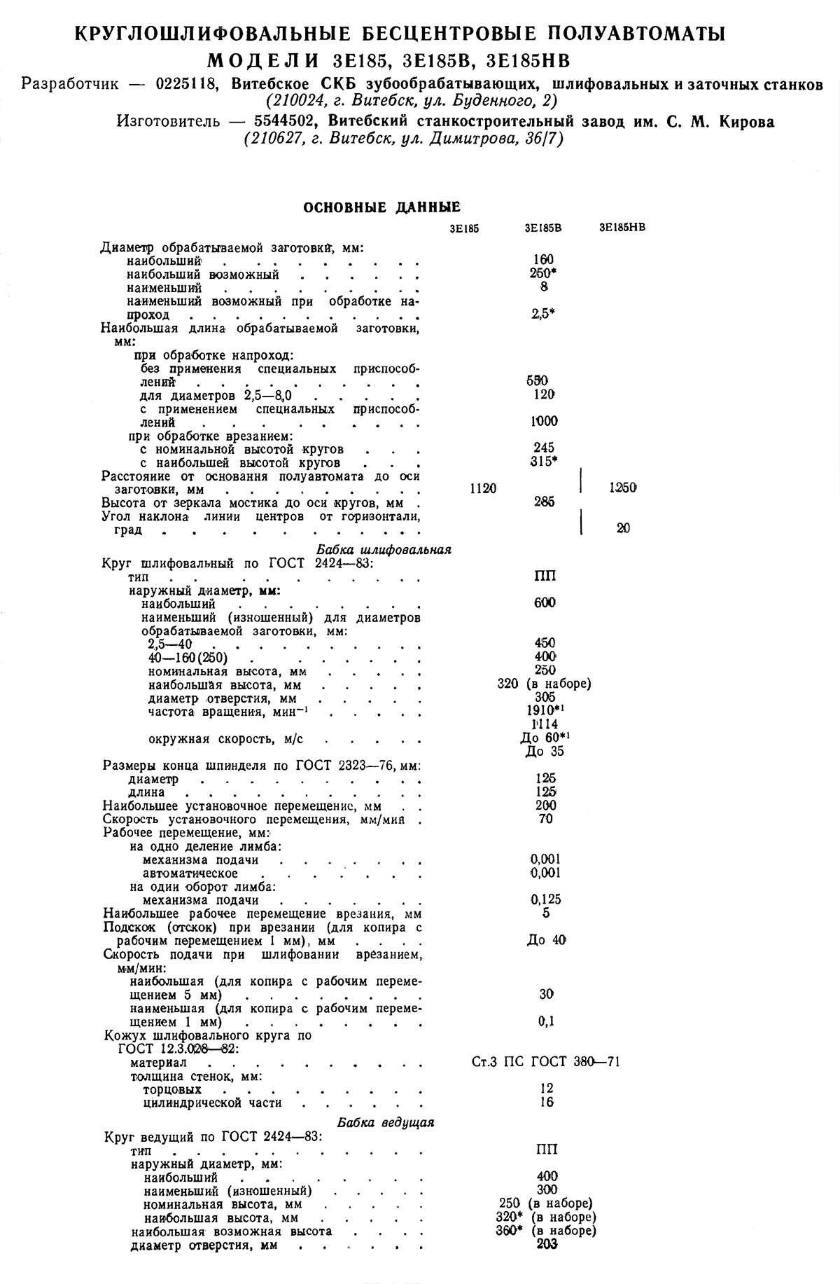 Виробник безцентрового круглошліфувального верстата 3Е185 – Вітебський верстатобудівний завод Вістан , заснований у 1914 році.