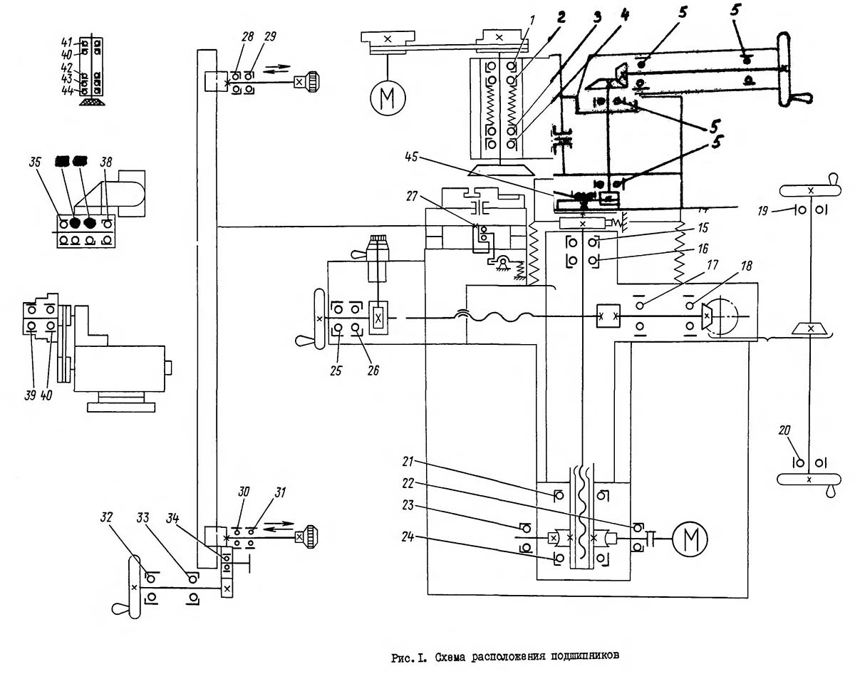 2. Схема розположення підшибників заточного верстата 3Е642. Дивитись у збільшеному масштабі