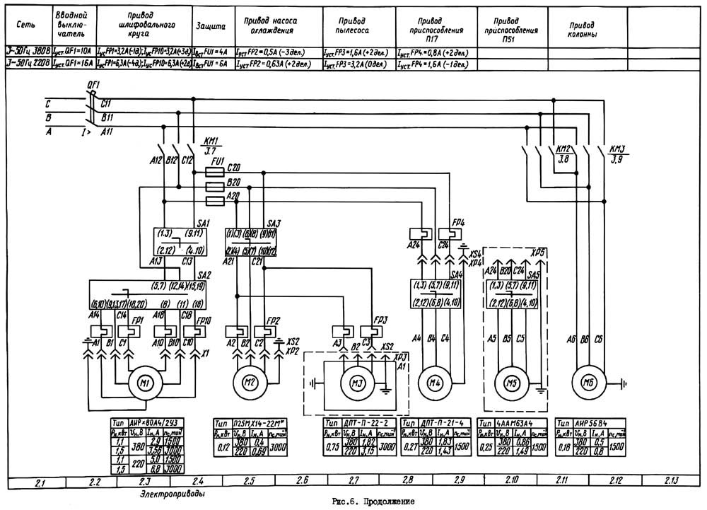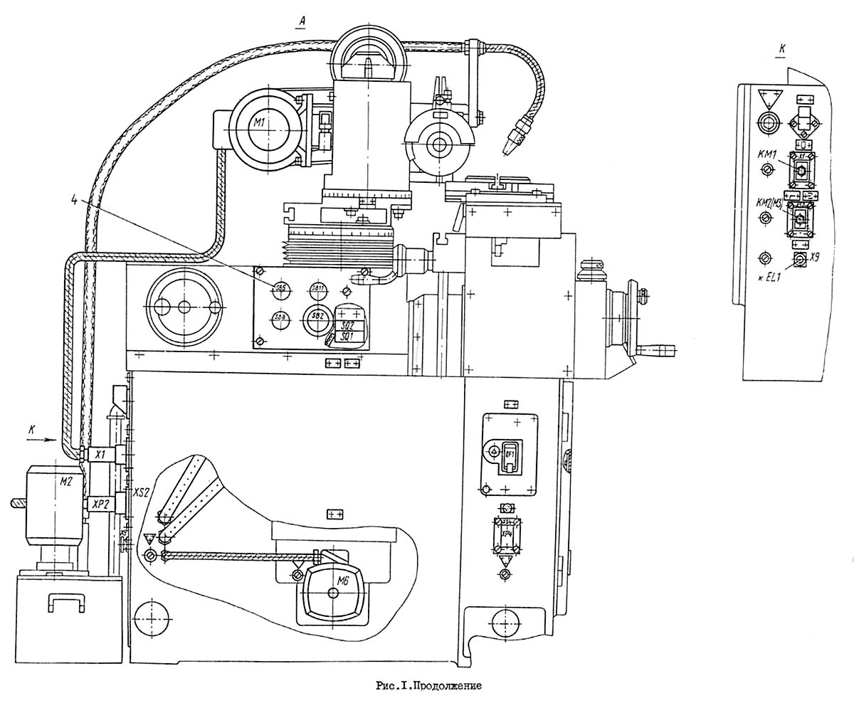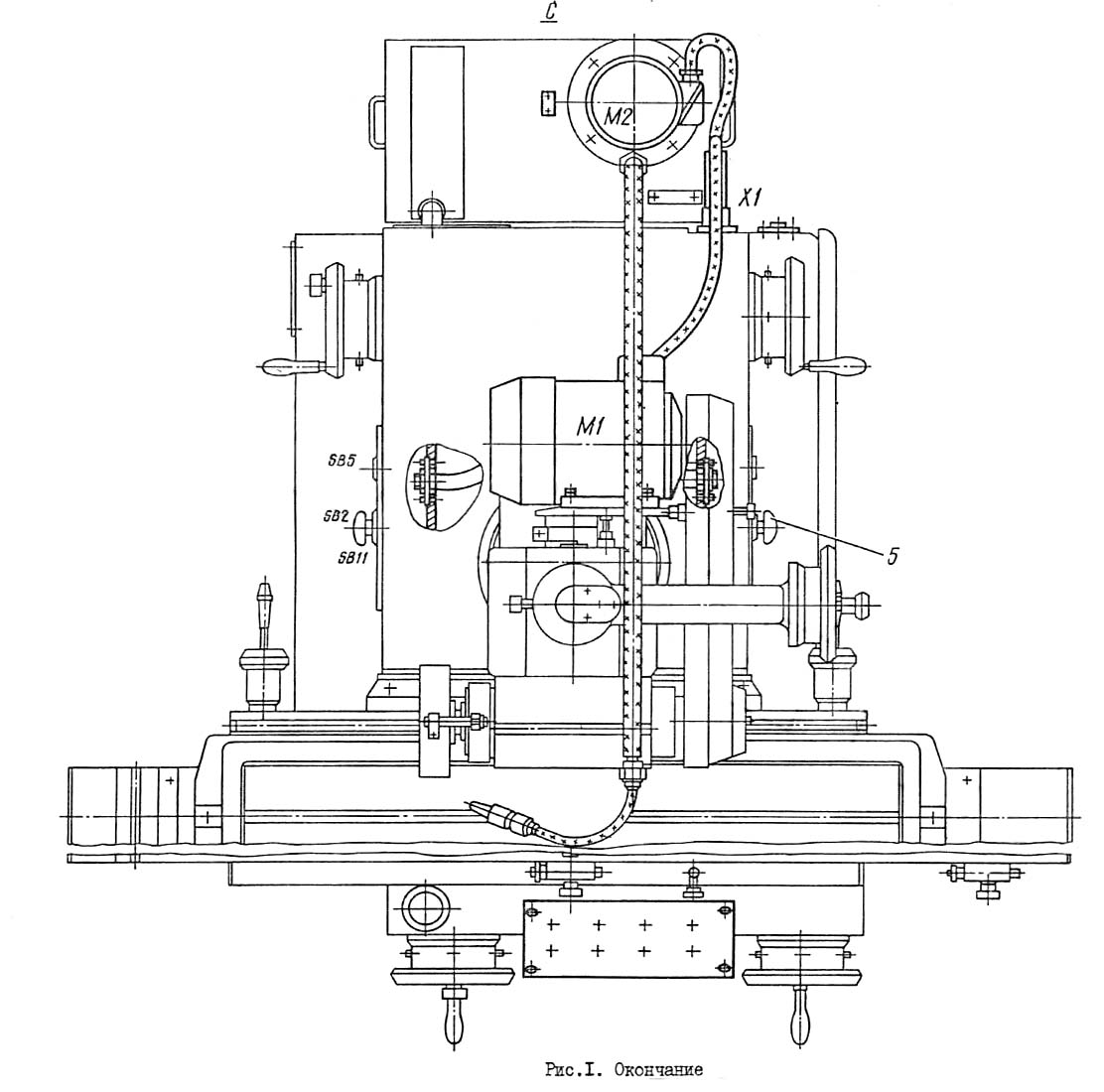 При достижении четкой роботи всех електроаппаратов, расположенных на панелі керування, подсоединить ранее отключенные провода живлення електродвигуна приводу колонны М6 к клеммам блока зажимов. Произвести фазировку сети правильным подключением питающих проводов к вводному клеммному набору, что определяется соответствием направления переміщення колонны назначению кнопочных выключателей на пультах керування, определявших ети переміщення. Далее подключить остальные електродвигатели.