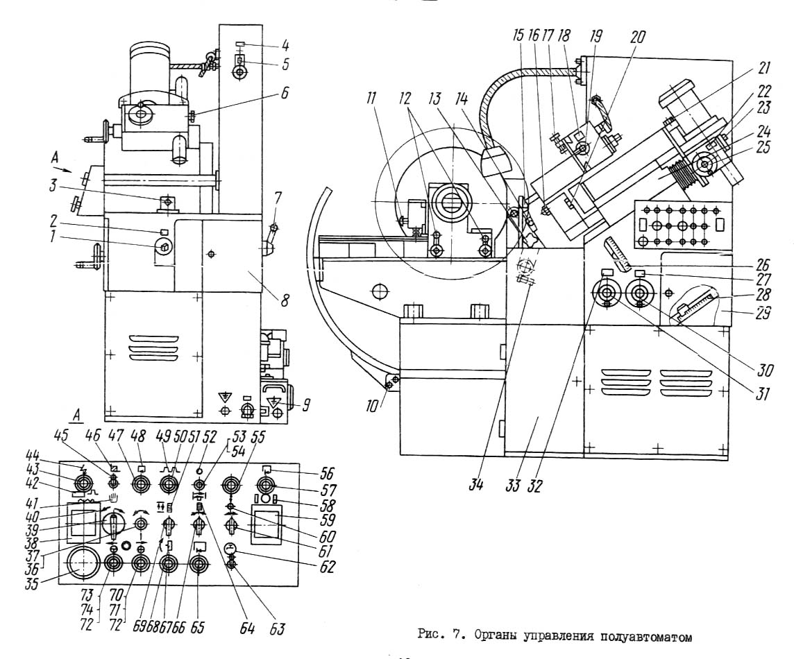 Розташування органів керування заточувальним верстатом 3Е692. Завантажити у збільшеному масштабі