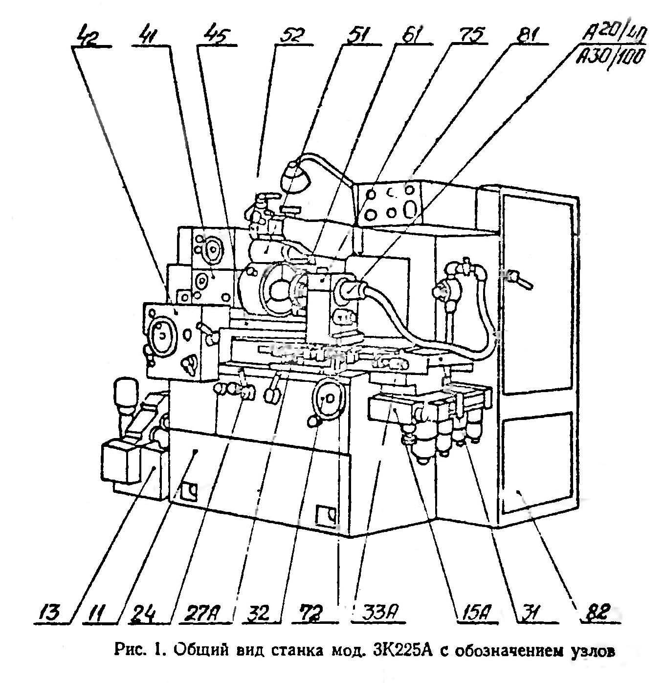 Розташування складових частинин верстата 3К225. Дивитись у збільшеному масштабі