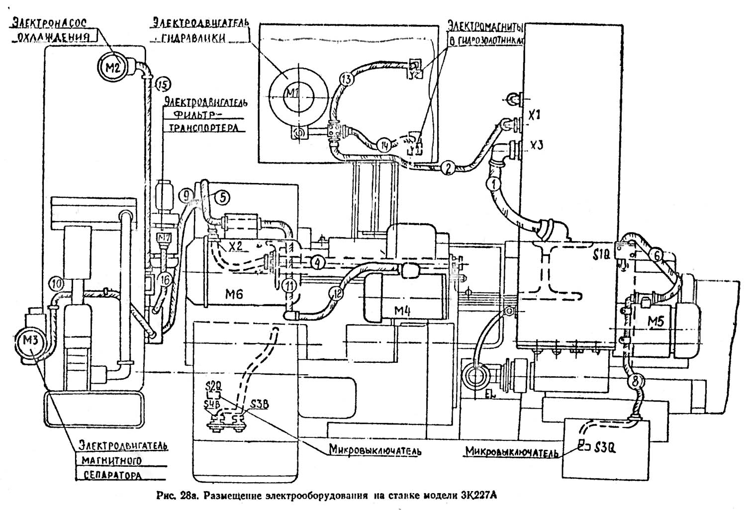 Размещение електроустаткування на станке 3К227А. Дивитись у збільшеному масштабі