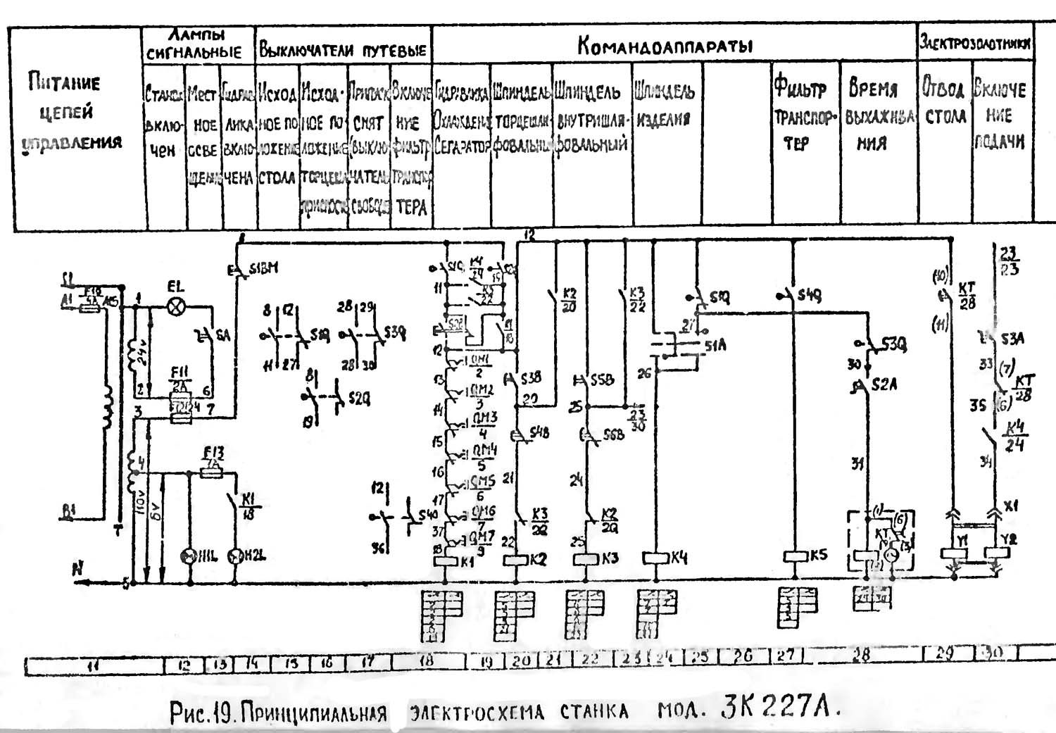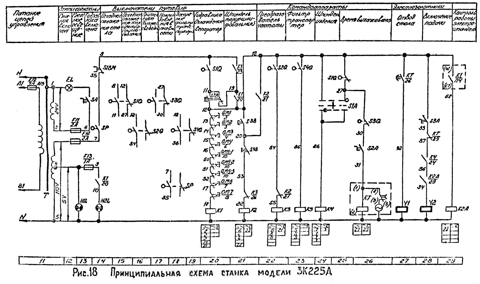 Схема електрична принципова верстата 3К227А. Дивитись у збільшеному масштабі