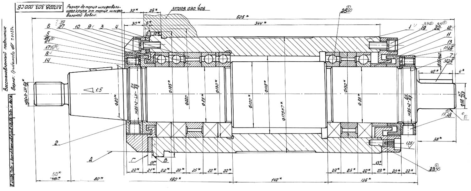 Креслення шпинделя шліфувального верстата 3Л722В. Дивитись у збільшеному масштабі