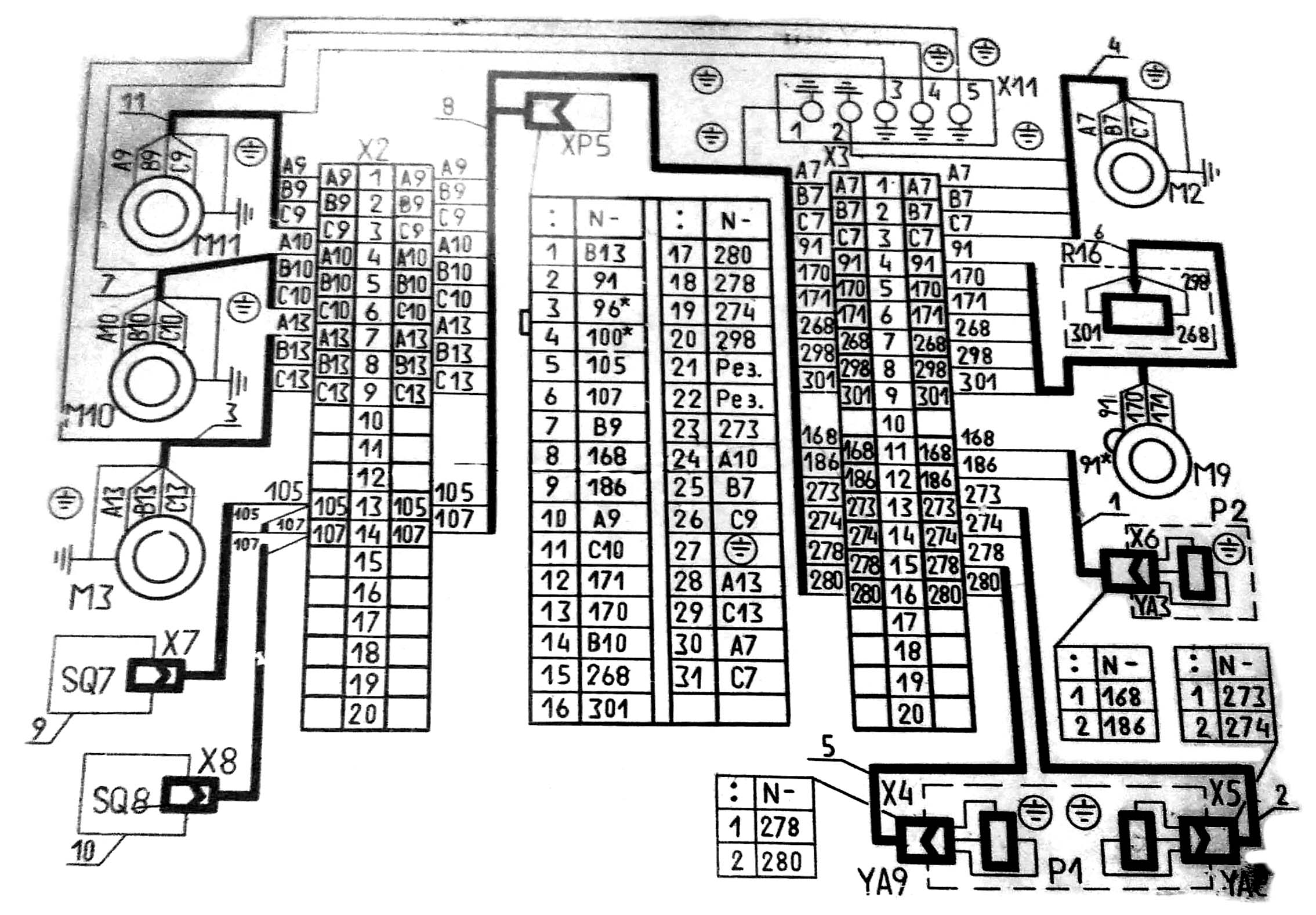 Схема електрична шліфувального верстата 3Л722А. Дивитись у збільшеному масштабі
