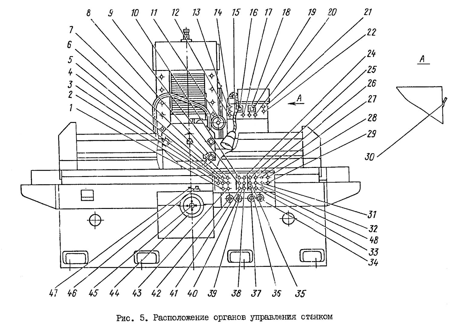 Розташування органів керування шліфувальним верстатом 3Л722В