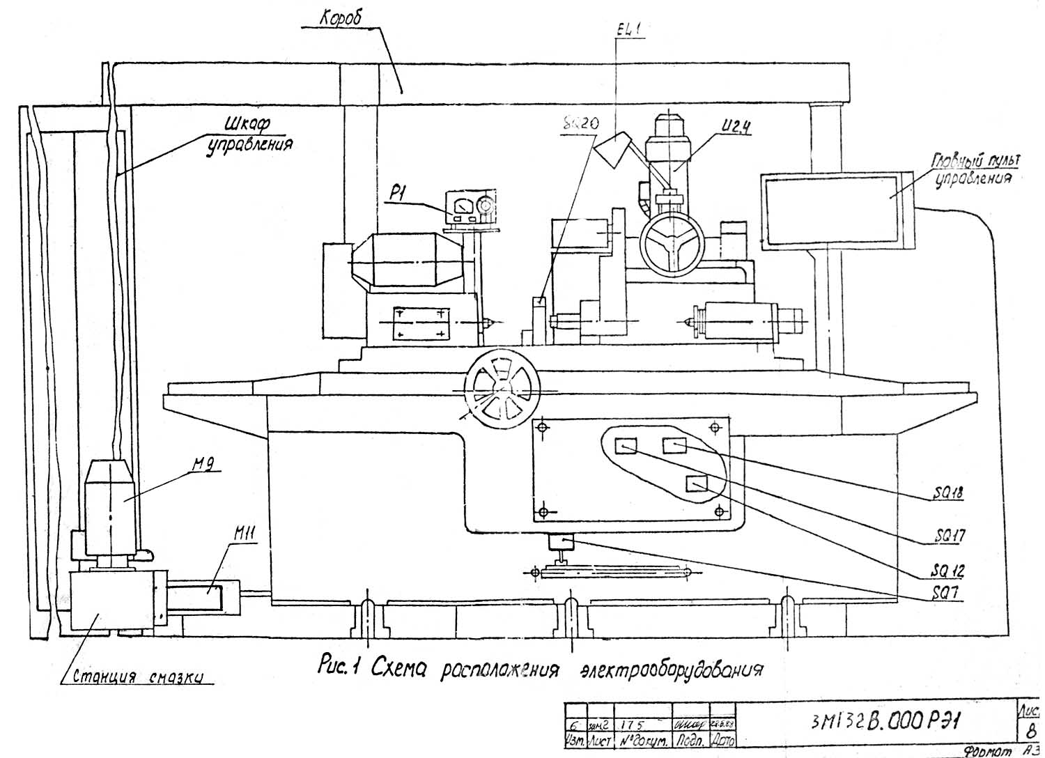 Схема розміщення електроустаткування на круглошлифовальном станке 3М132в