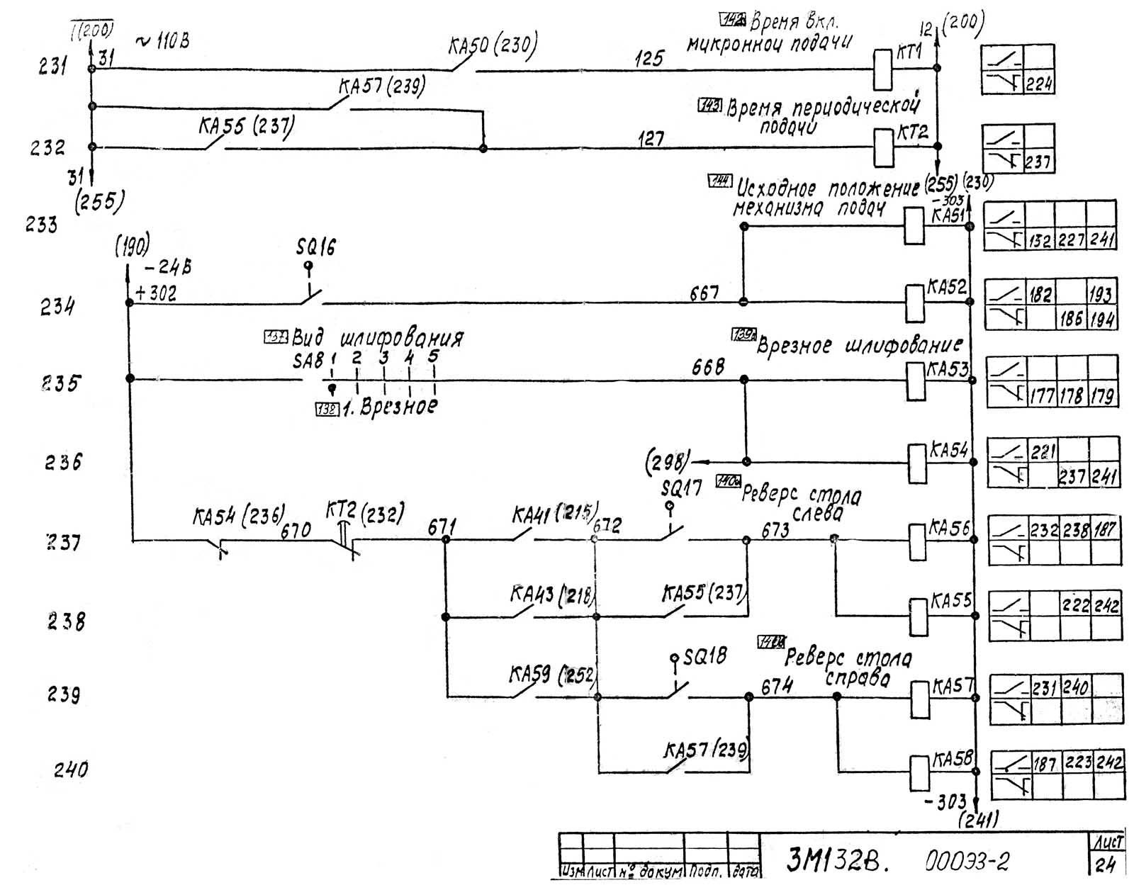 Черновая і чистовая подачі производятся периодически в момент реверса стола при включении SQ17 і SQ18 на время, определяемое установкой реле КТ2 ж в зависимости от положения переключателя места подачі SA8.