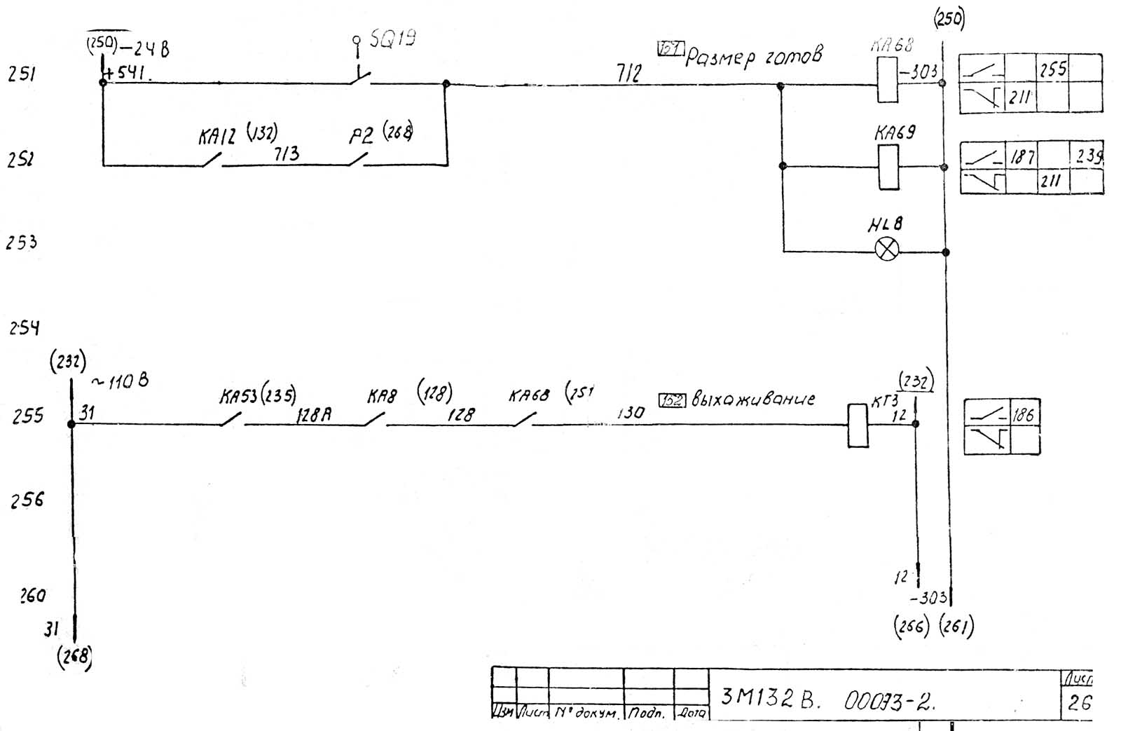 При получения размера вироби нажимается SQ19 подачі прекращаются, идет выхаживание - включена лампа HL8. Число ходов выхаживания определяется переключателем SA5.