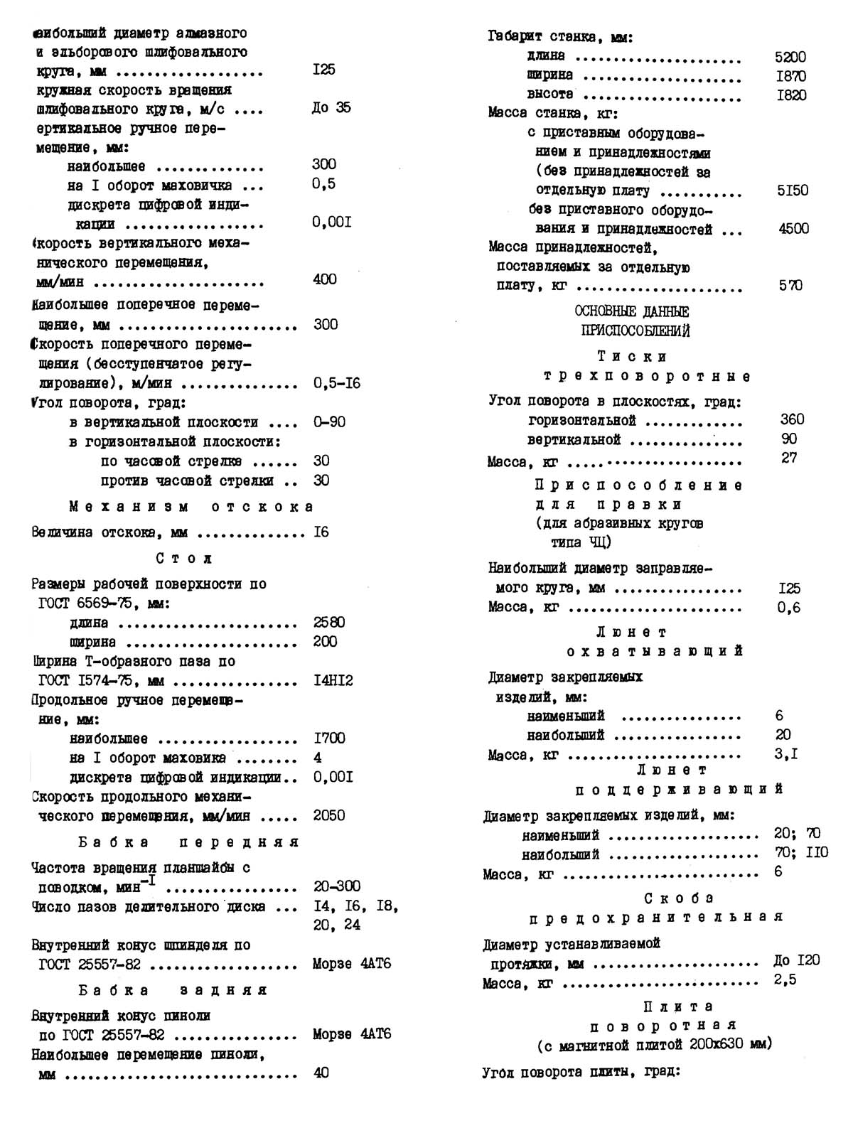Технічні характеристики заточувального верстата 3М601Ф1. Завантажити у збільшеному масштабі