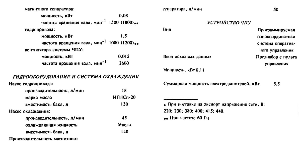 Технічні характеристики заточувального верстата 3М666ВФ2