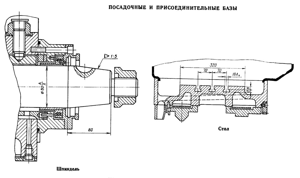 Приєднувальні та посадкові бази верстата 3П722. Дивитись у збільшеному масштабі