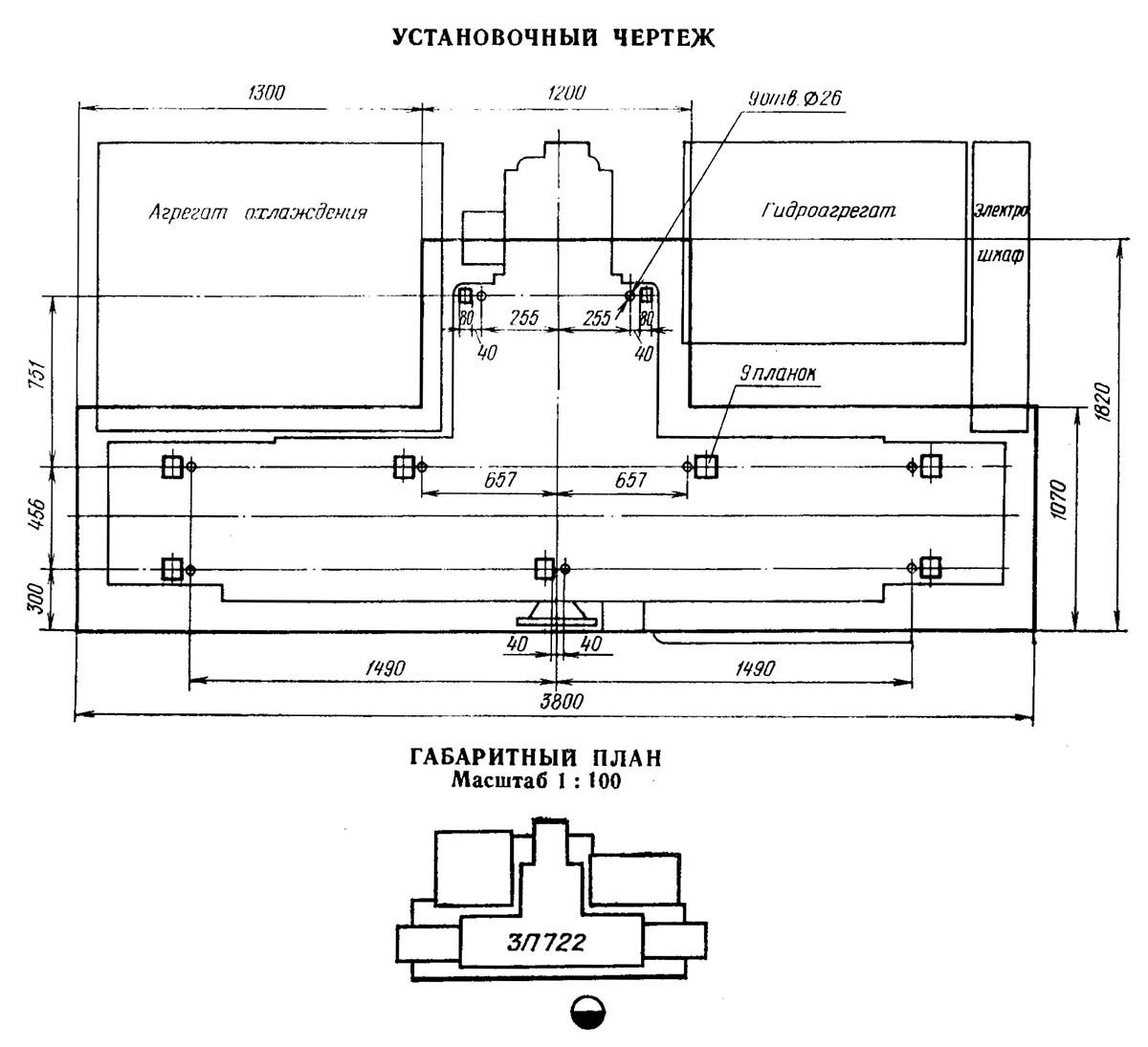 Настановне креслення плоскошліфувального верстата 3П722. Дивитись у збільшеному масштабі