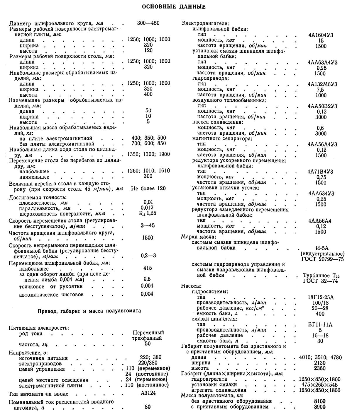 Характеристики плоскошліфувального верстата 3П722 Дивитись у збільшеному масштабі
