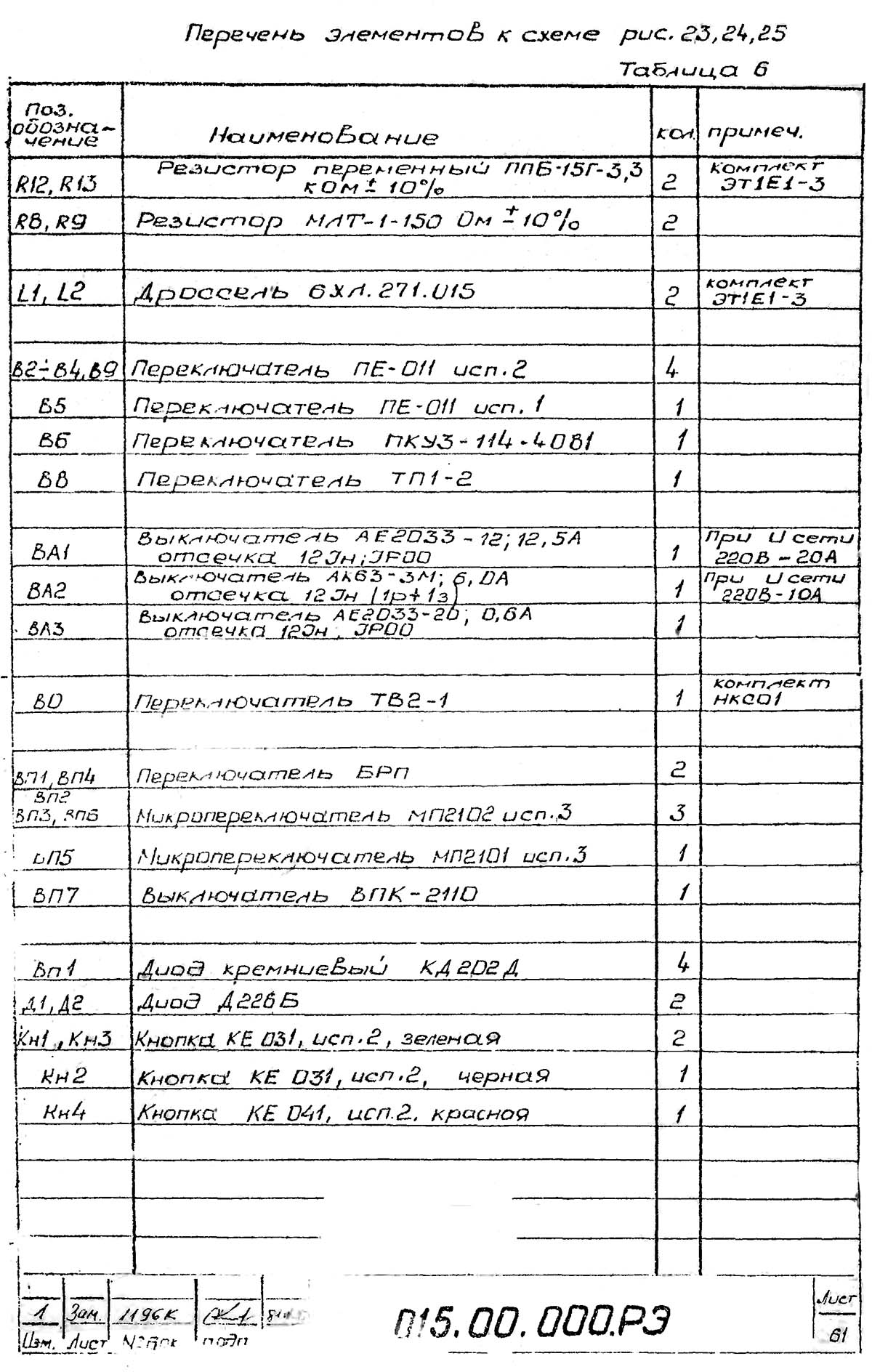 Схема електрична принципова показана на рис. 23, 24, 25 в табл. 6 указан перечень елементів к схеме.