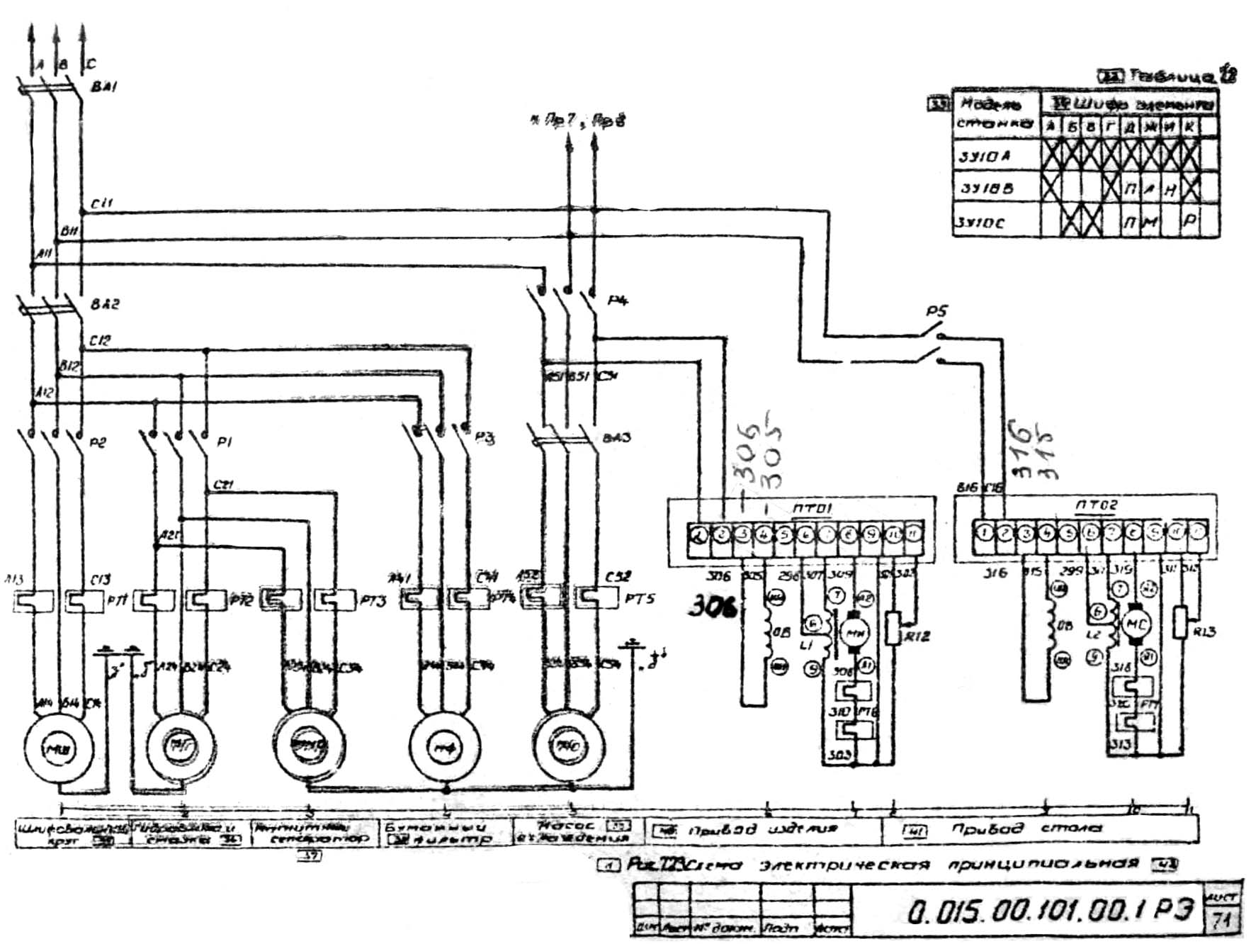 Електрична схема круглошлифовального верстата 3У10А, 3У10В, 3У10С