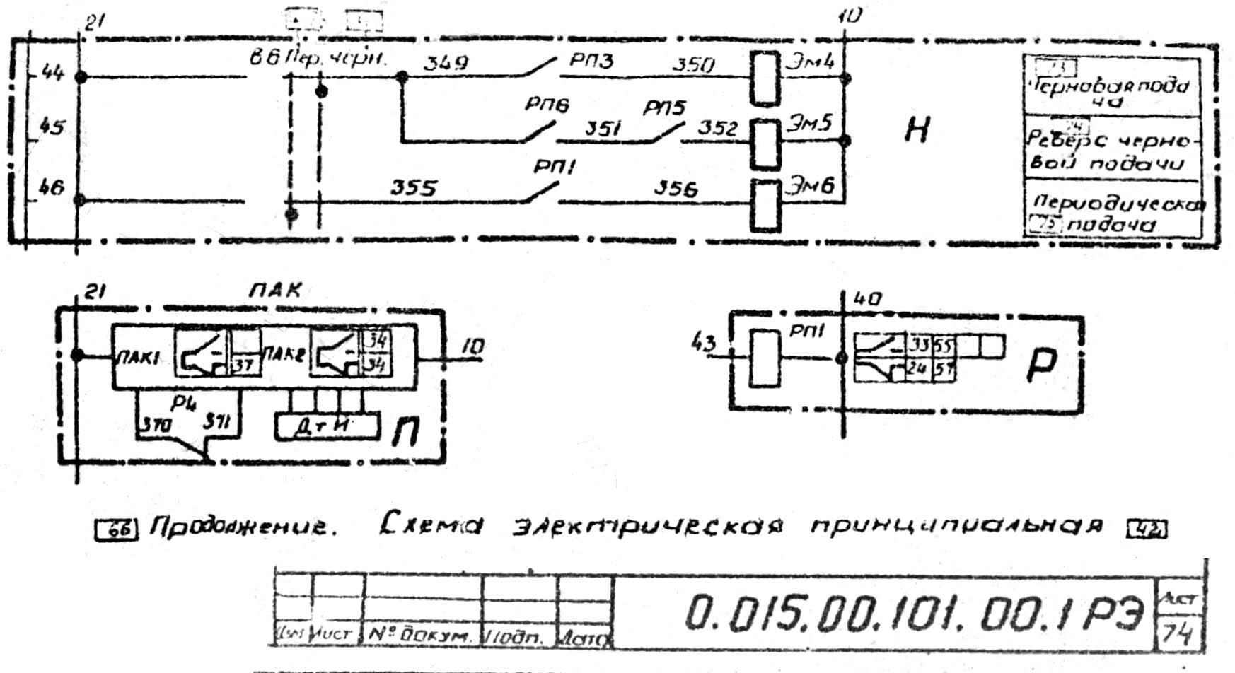 В етом режиме работает только електромагнит Эм6, при включении которого через НО контакт РП1 осуществляется периодическая подача, а при отключении - подача прекращается.