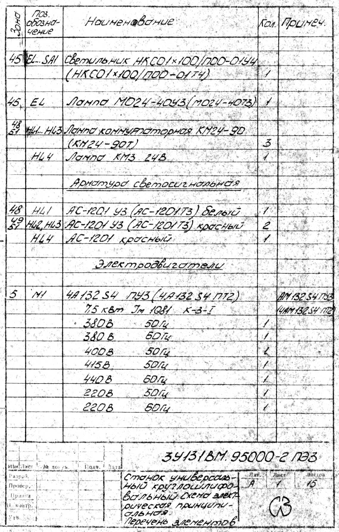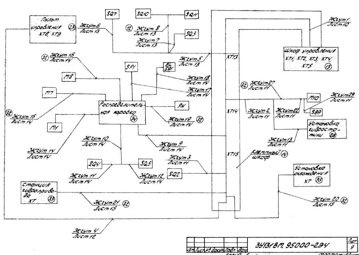 Електрична схема круглошлифовального верстата 3У131. Дивитись у збільшеному масштабі
