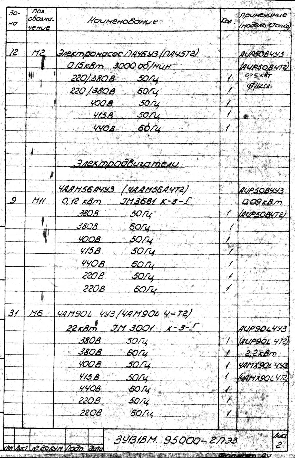 Привід механізмов в станке осуществляется 11-ю трехфазными асинхронными електродвигунами М1..М8, М11, М12, М14.